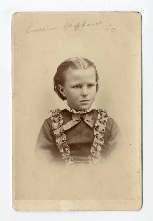 Mounted photo of Luella Shepherd, aged 10 years old. She married Thomas F. Butler on August 15, 1888.