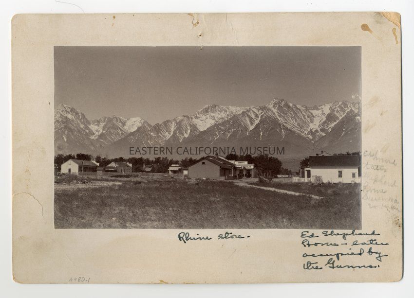There are lots of written notes on the photo mounting, including: "Rhine Store" and "Ed Shepherd home, later occupied by the Gunns" and "Ed's home later Shepherd home Luella [illegible]."Collection