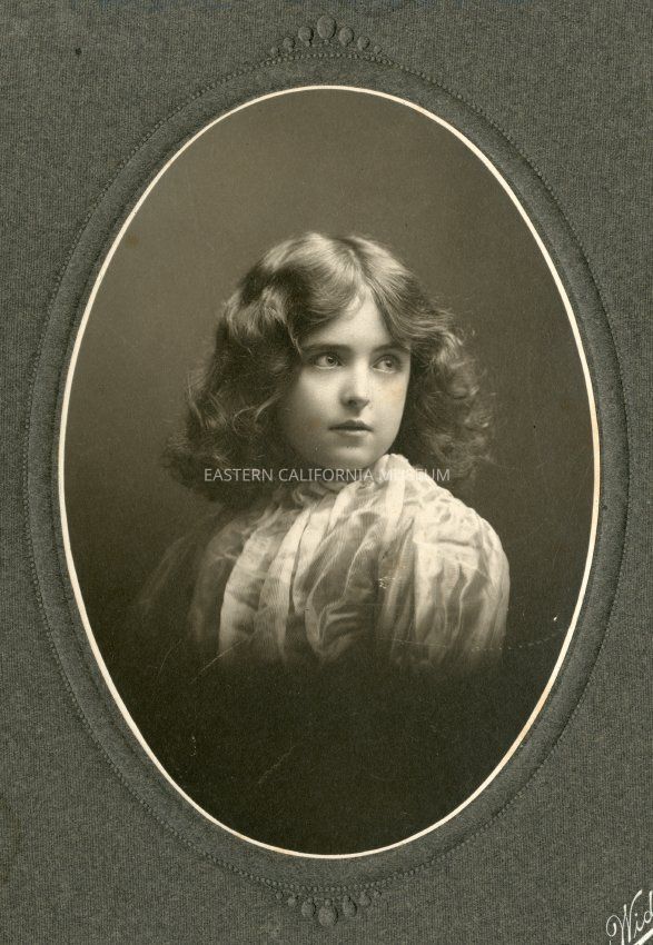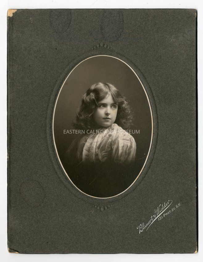 Mounted, oval photo of Helen Gunn (Edwards), aged nine years old. Photographed by Blauert and Widder of San Francisco.