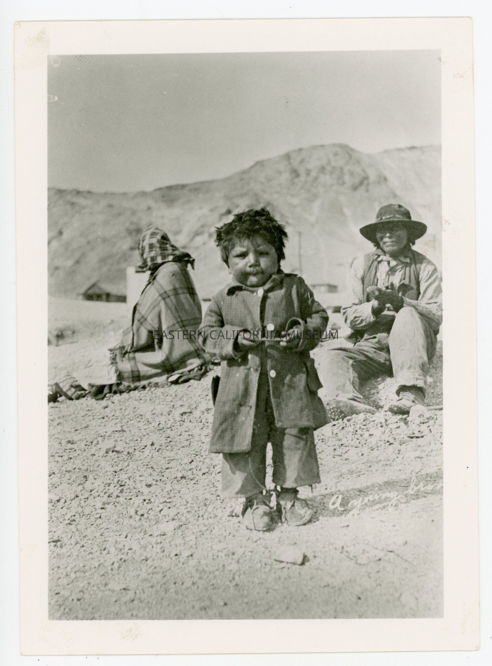 A617.15--Indians in Beatty, Nevada, 1905. [The child is Hank Patterson. Written beside him is "A young brave."]