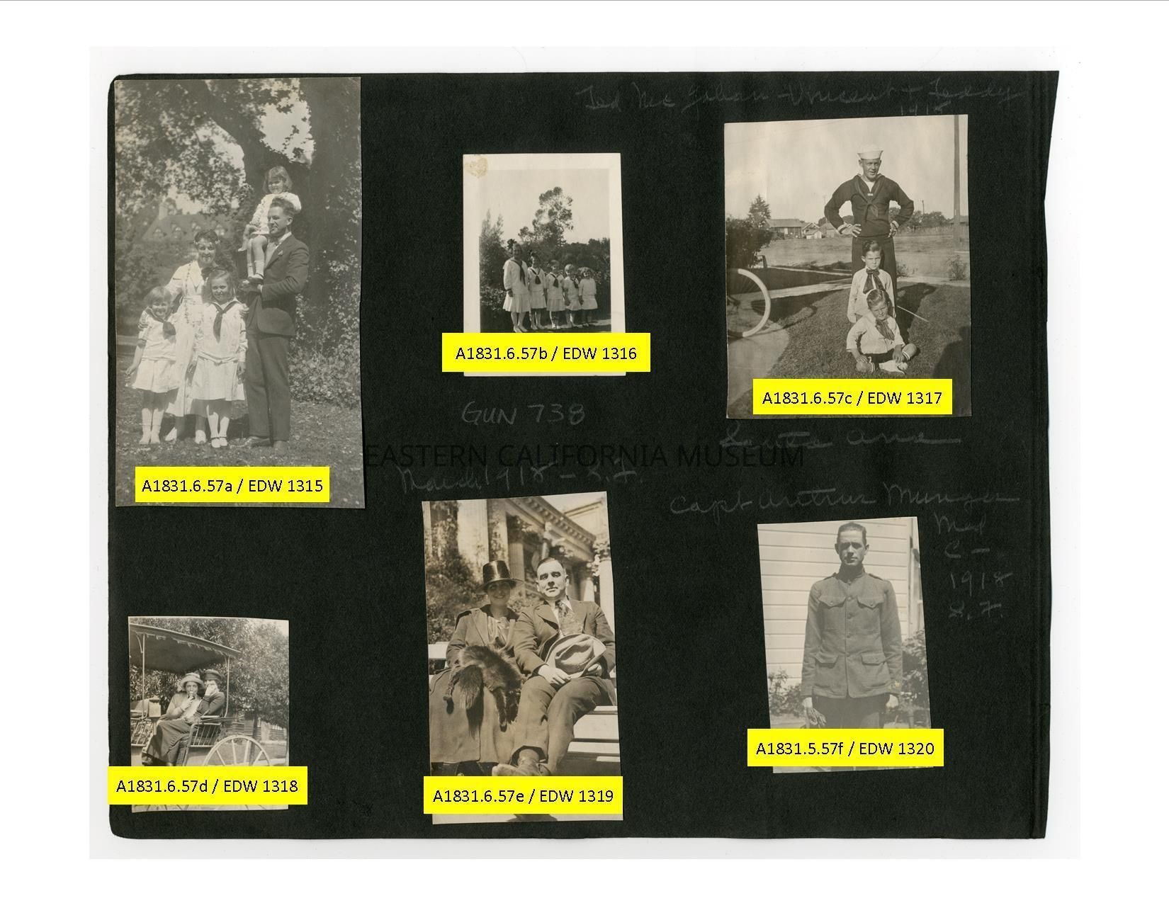 A1831.6.57f: Photo of a man in military uniform. He is holding his hat in his hand. Written on album page above is, "Capt. Arthur Munges (sp?), Med C, 1918, S.F. [San Francisco]."Collection