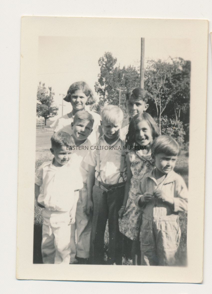Written in pencil on reverse: Billie Southey, Lloyd Southey, Claude V. Drew, Marvin Donald Smith, Louise Southey, Keith D. Drew, Arthur Southey, about 1930-1931.Collection