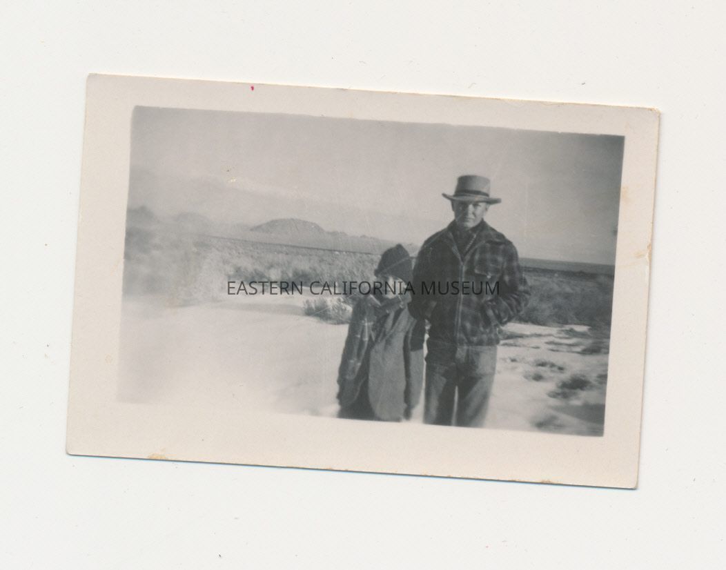 Small photo of two boys standing bundled up in the snow. They are likely Virgil Smith and Marvin Donald Smith.