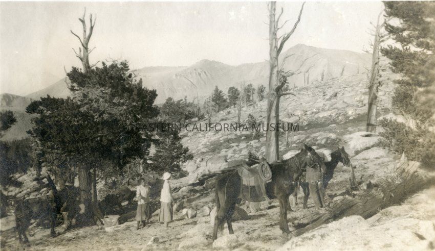 Identified by donor as: 1913-14 - Basecamp Cottonwood SE of Mt Langley, Patti George left