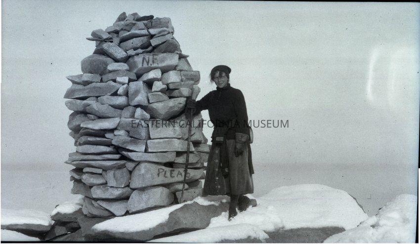 Identified by donor as: 1914 - Patti George on top of Mt Whitney