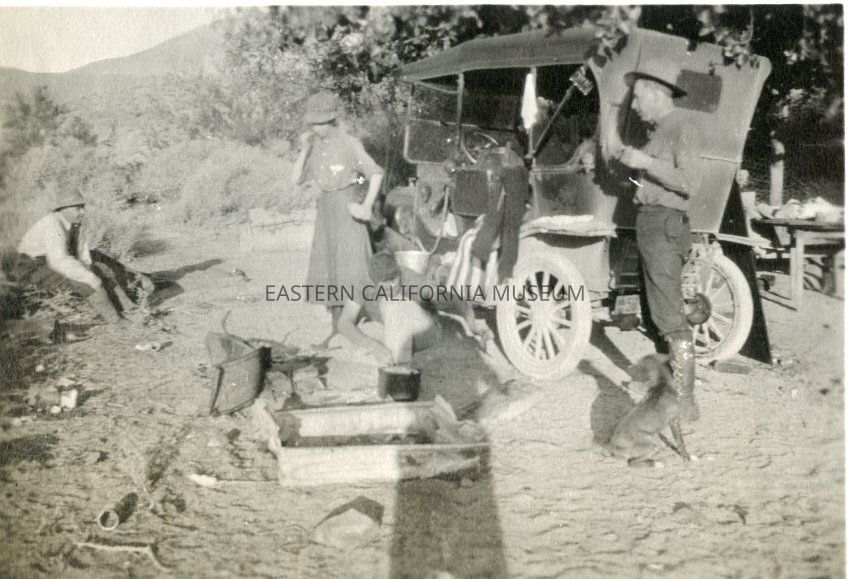 Identified by donor as: 1916 - Howard Whitney right with unknown people, possibly Independance at the beginning or end of the trip