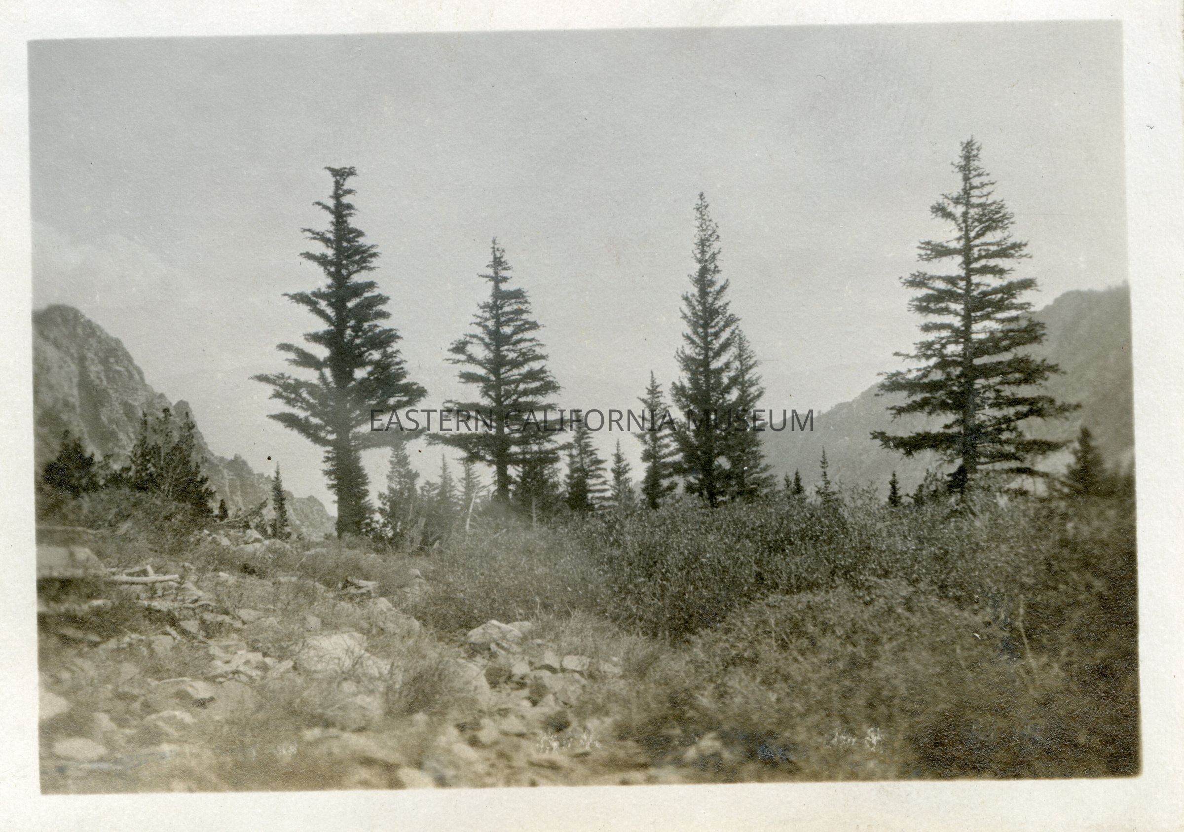 Photo of trees in a mountainous landscape.