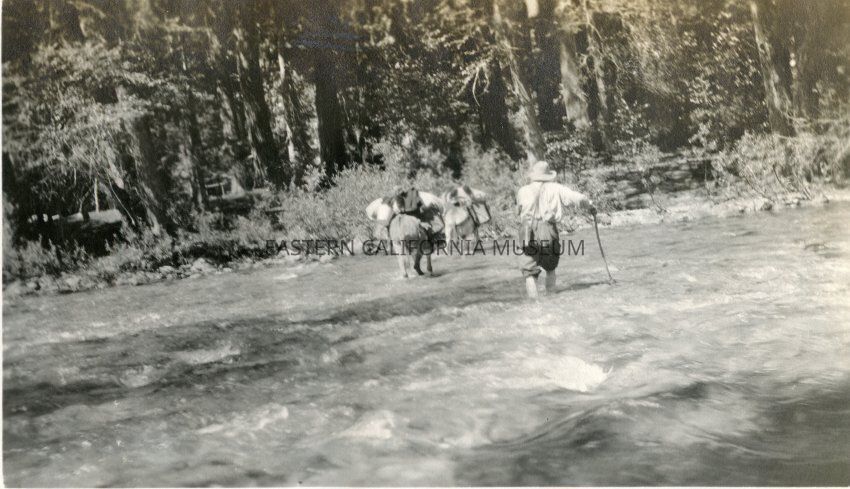 Identified by donor as: 1916 - Possibly Woods Creek crossing, unknown man iwth burros