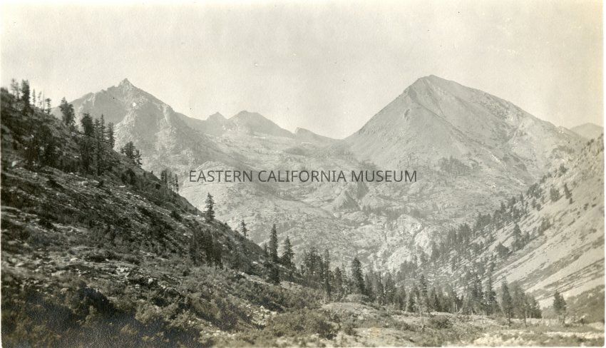 Identified by donor as: 1916 - Woods Creek looking toward Pichot Pass with Mt Wynne