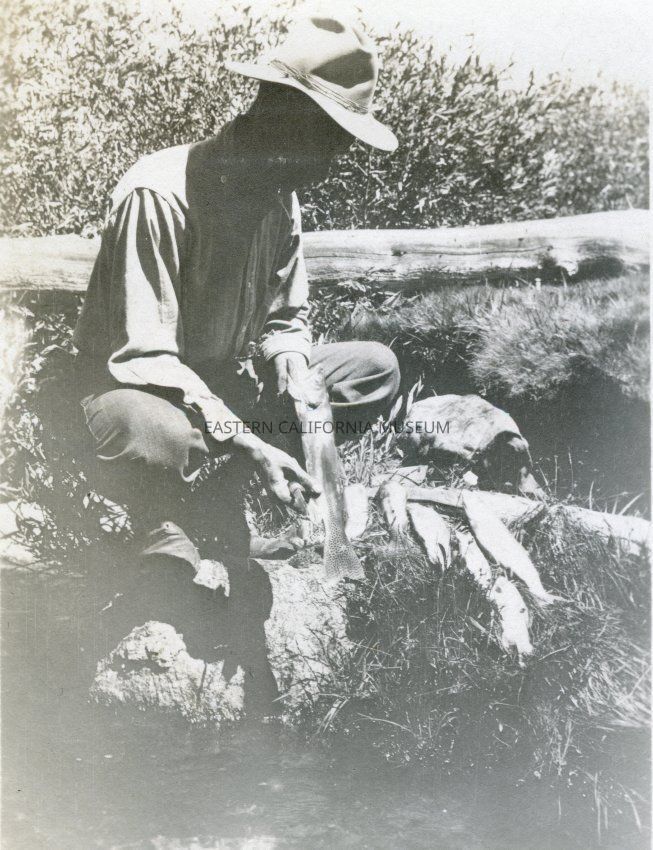 Photo of a man gutting/cleaning fish.