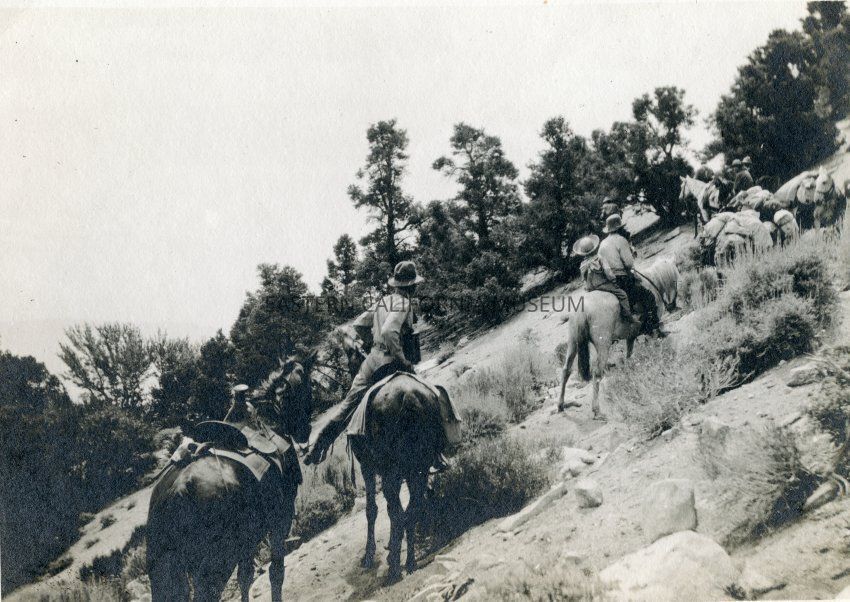 Identified by donor as: Unknown location, Howard Whitney in rear, pack train