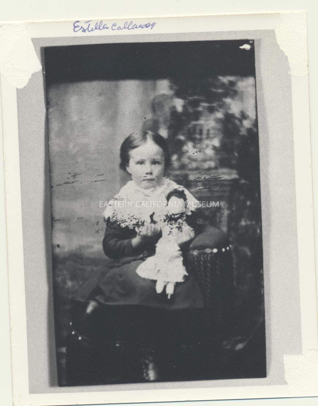 Copy of a studio portrait of Estella Robinson Callaway as a young girl holding a doll.
