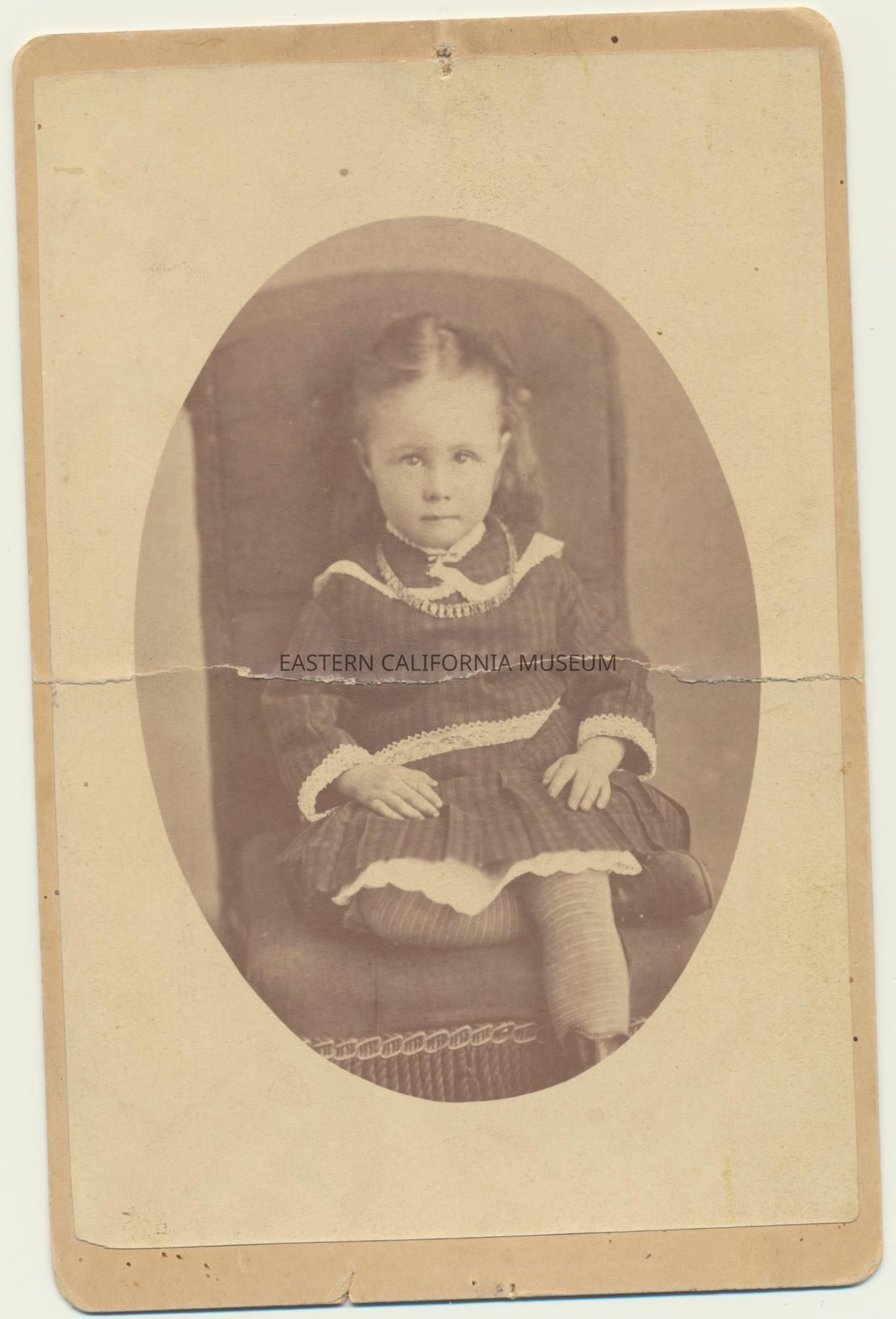 Mounted studio portrait of Estella Robinson Callaway as a young girl sitting on a chair.