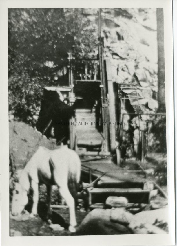 B&W glossy print: mining equipment with horse in foreground FOLDER: Mining