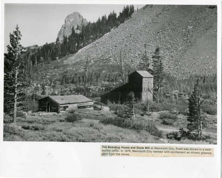 The Boarding House and Doyle Mill at Mammoth City. Food was stored in a rock-walled cellar. In 1879, Mammoth City teemed with excitement as miners gleaned gold from the mines.