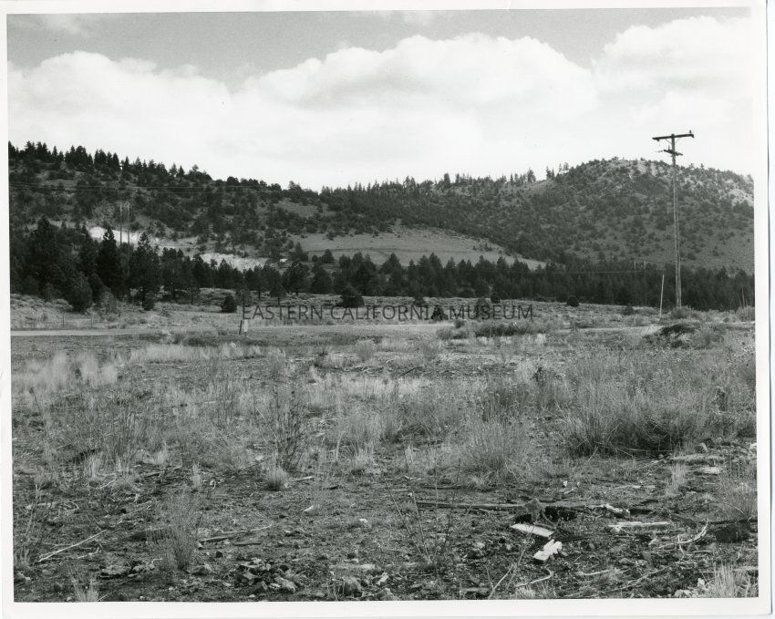 B&W glossy print: landscape shot , near what is now Mammoth geo-thermal plant, just E. of highway 395 & highway 203