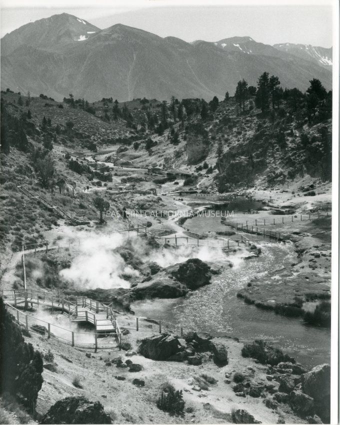 B&W matte print: hot creek area, near town of Mammoth Lakes - currently an area managed by Inyo National Forest for daytime bathers