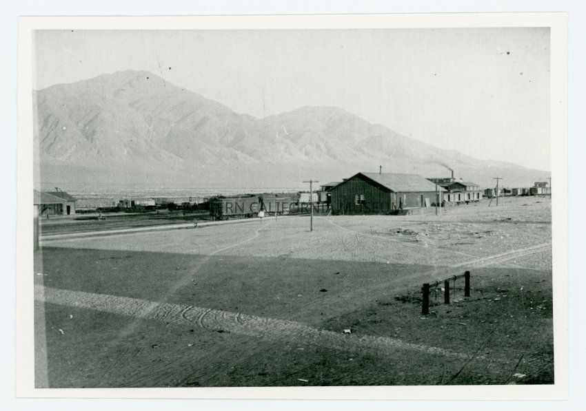 Photo of the train yard at Mina, Nevada in 1907.