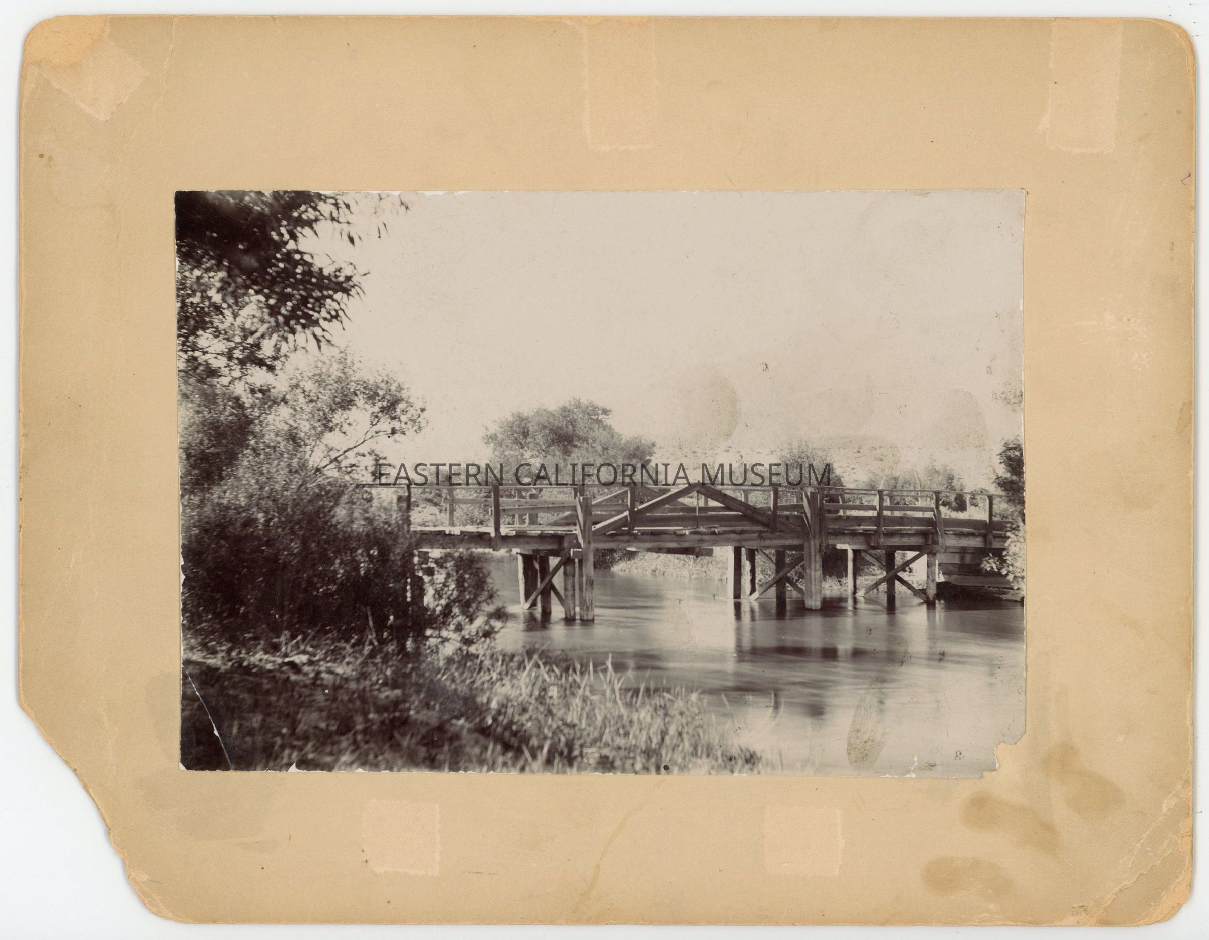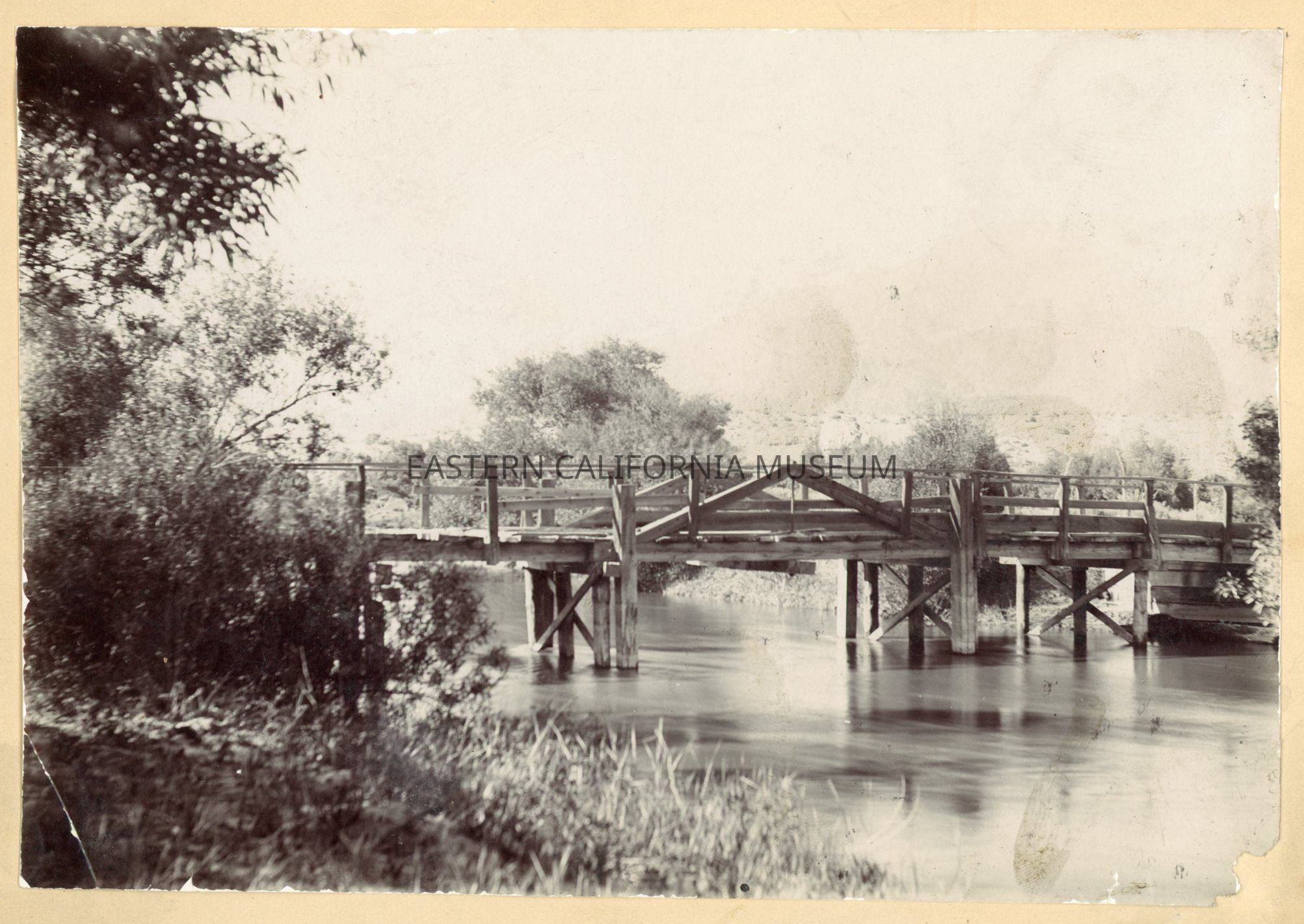 Written on reverse: Adeline. Owens River Bridge (northeast of Lone Pine, Inyo Co., Calif.). Meysan Old Inyo Picture Collection.Collection