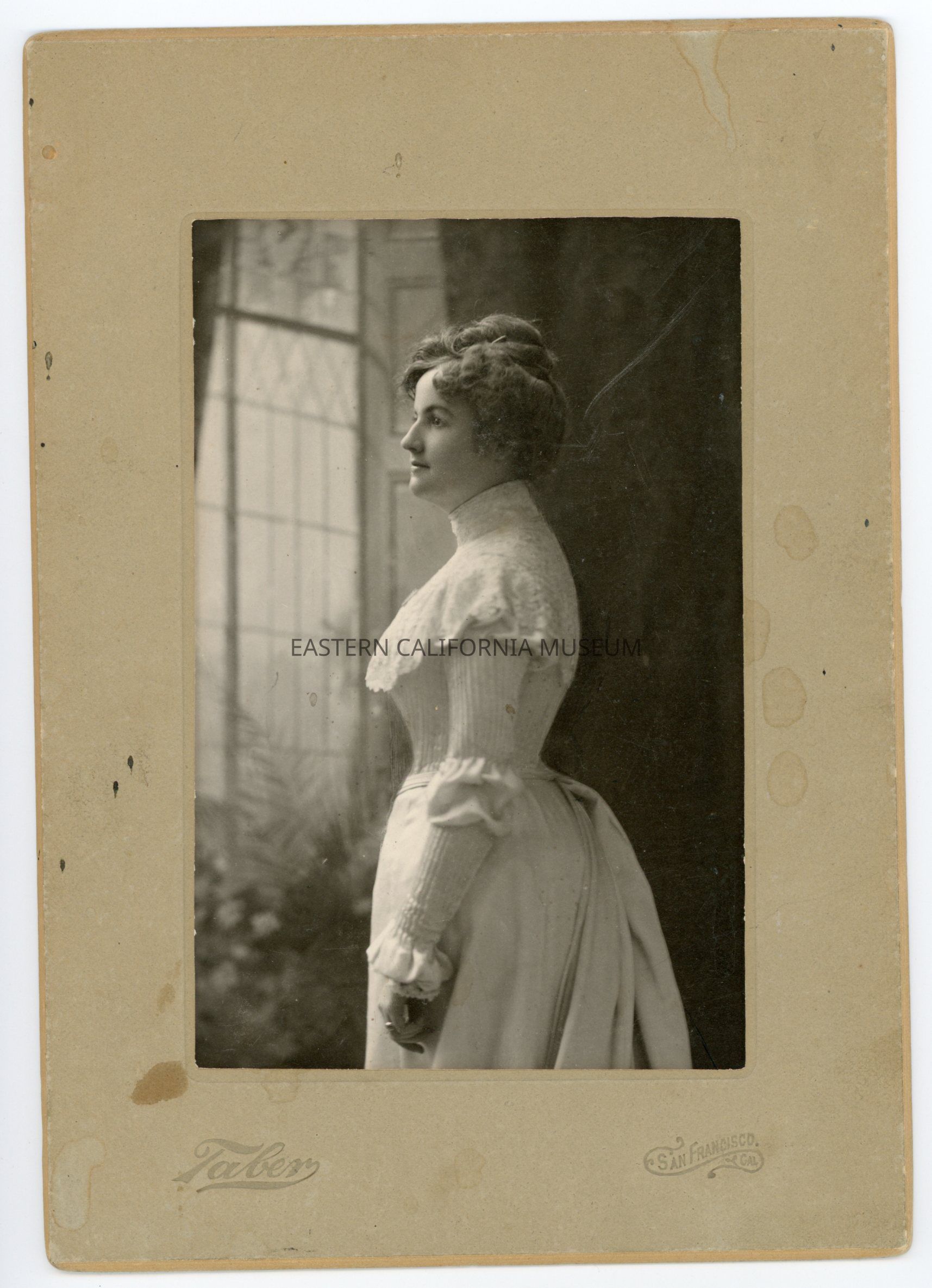 Mounted studio portrait of May McDonald Grace. Photographer was Taber of San Francisco.