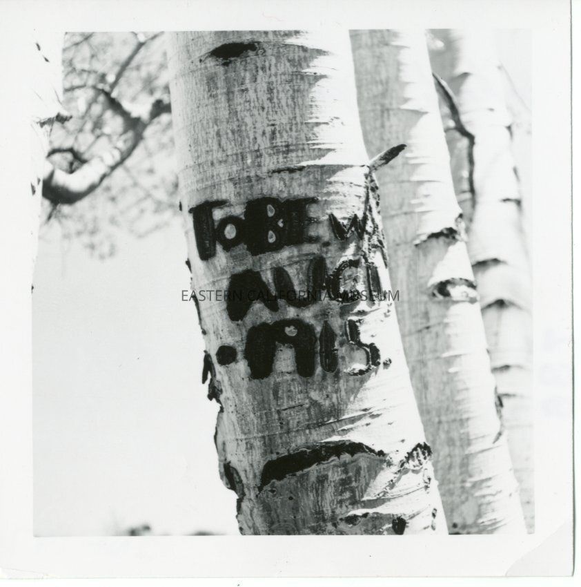 B&W glossy print: name & date craved into an aspen tree - probably done by a sheep herder