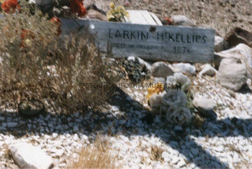 Backside text reads: Names of those in the grave The white cross stands over the two children's graves E. Stewart Aug 1986
