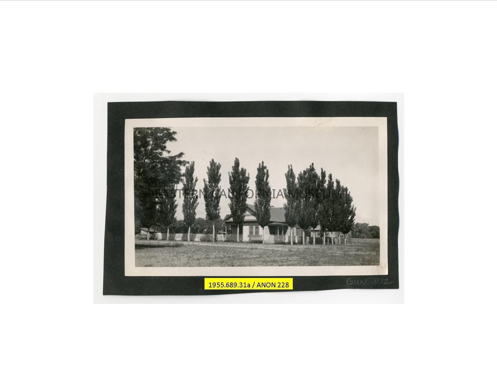 Photo of a house bordered by trees. Location is probably the Independence area.