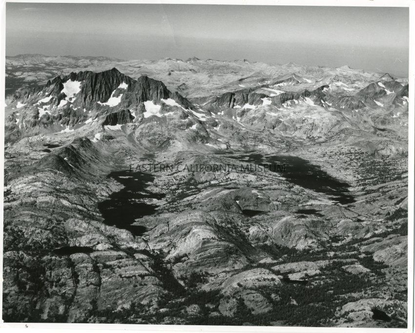 B&W glossy print: aerial photo of wilderness behind Town of Mammoth Lakes