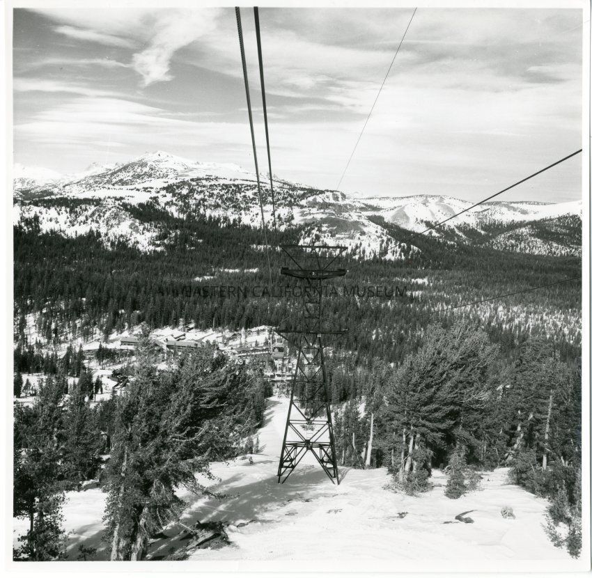 Backside text reads: ski lift, gondola cable, looking down on lodge, Mammoth Mountain