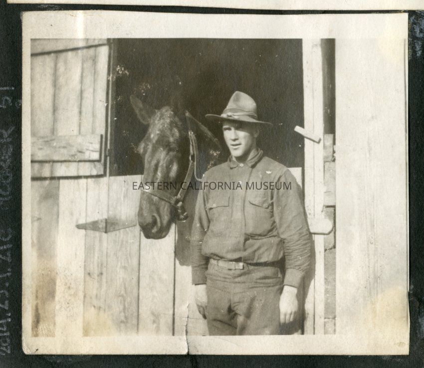 Unidentified good-looking man standing next to a stable door with horse's head poking out.