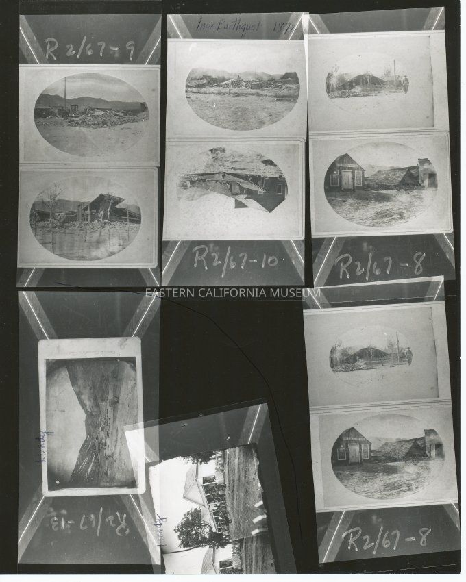Handwritten in black ink on reverse: Inyo Earthquake 1872 (Russ Johnson has negs). Lundy and Earthquake pictures (Russ Johnson has negs).