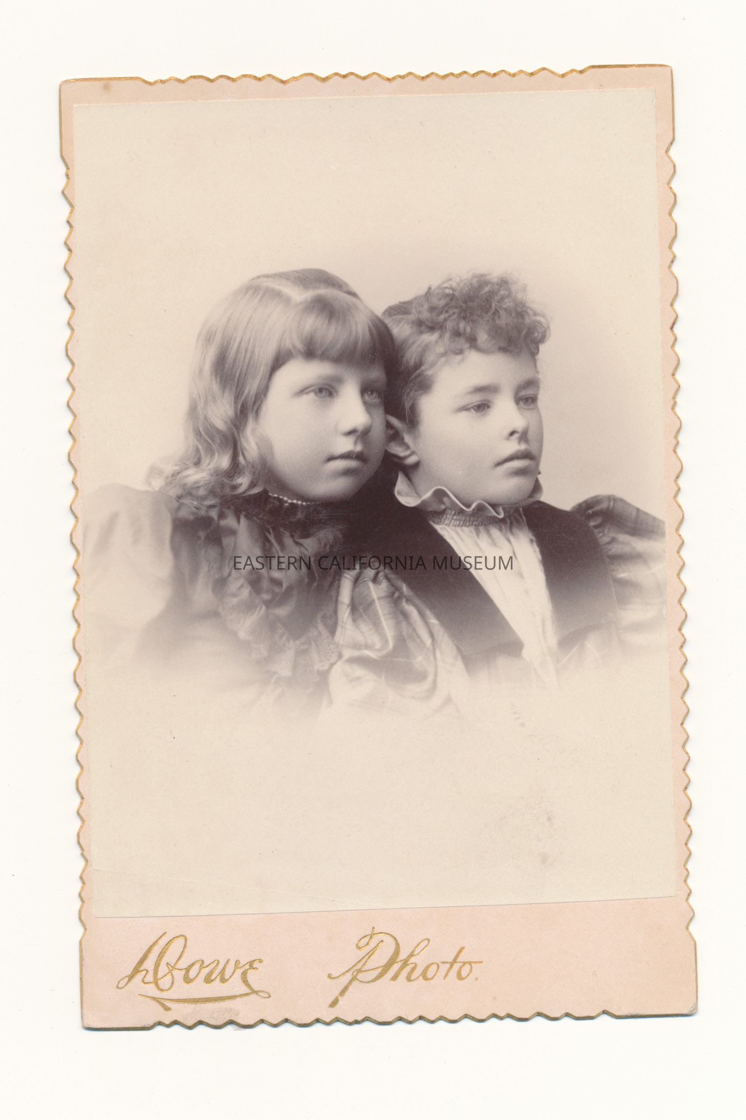 Mounted bust length studio portrait of Nettie Irwin (left) and Irma Webb (right) as young girls.Collection