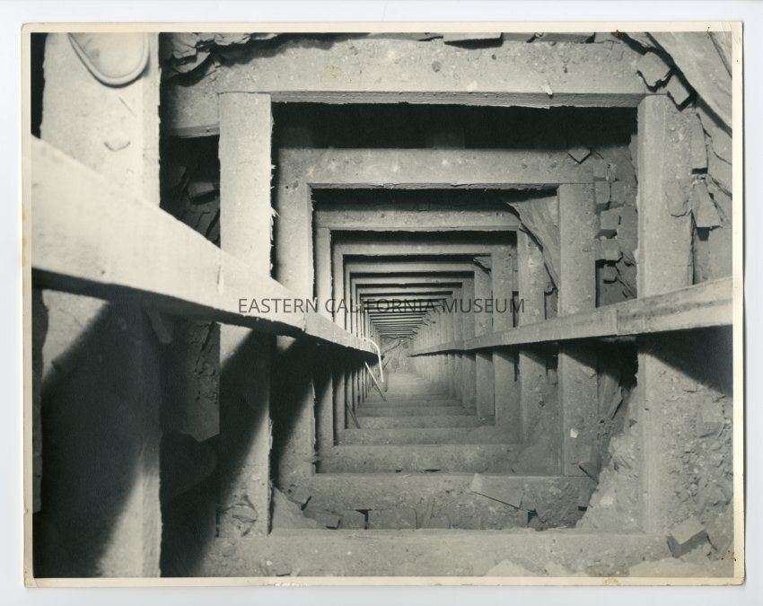Photo of a mine interior: down a mine shaft.