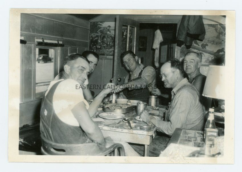 Written in black ink on reverse: N/g [narrow gauge] train and eng crew, eating in caboose enroute, 1946.Collection