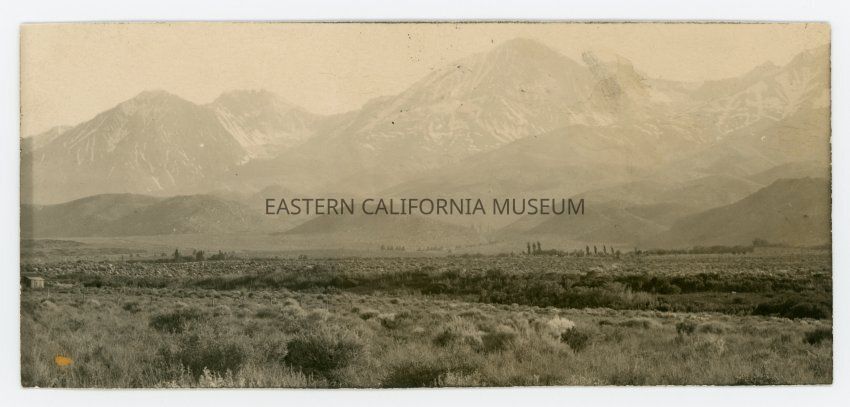 Cut-down photo postcard of the Sierra Nevada mountain range. It has been identified on the archival envelope as Charley's [or Charlie's] Butte.