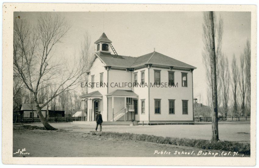 From the front of the postcard: "Salb Photo; Public School, Bishop, Cal., 71"