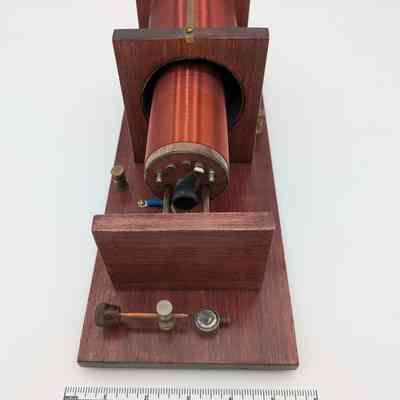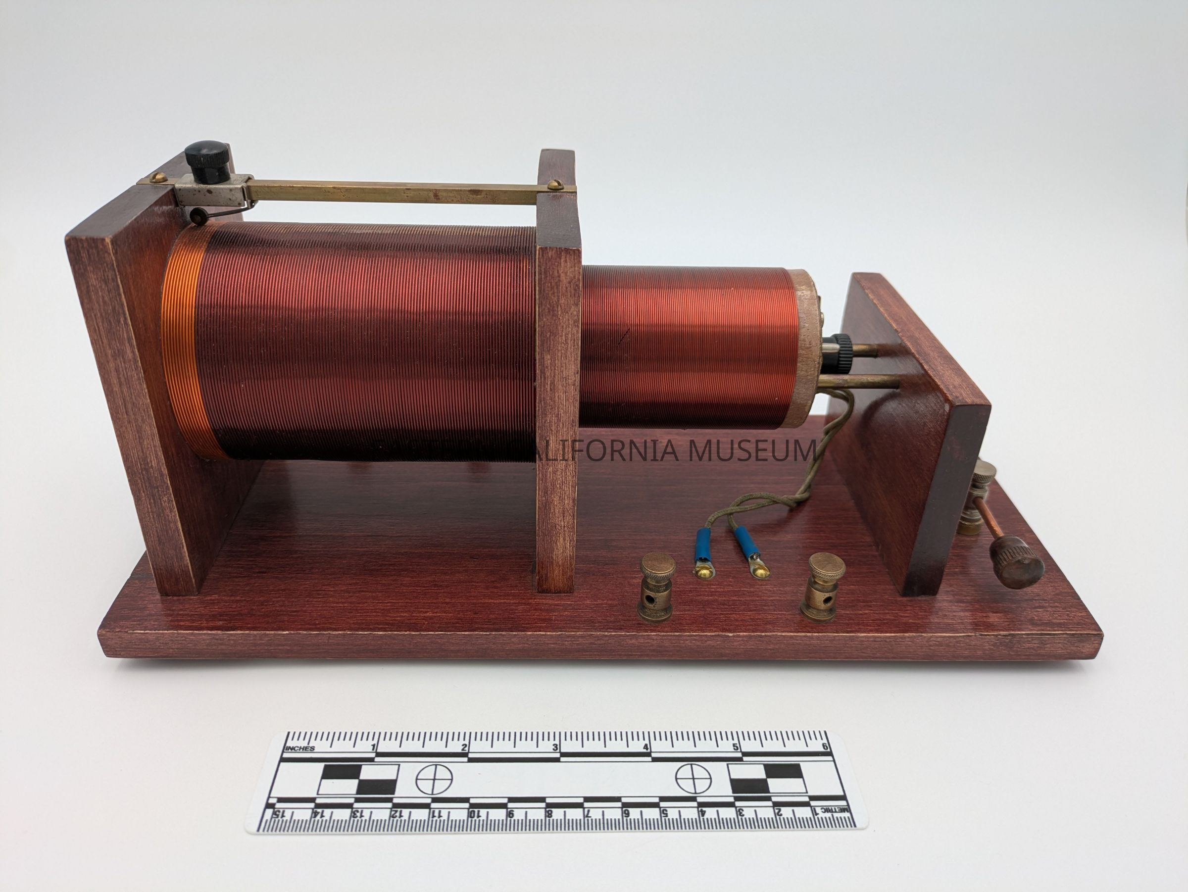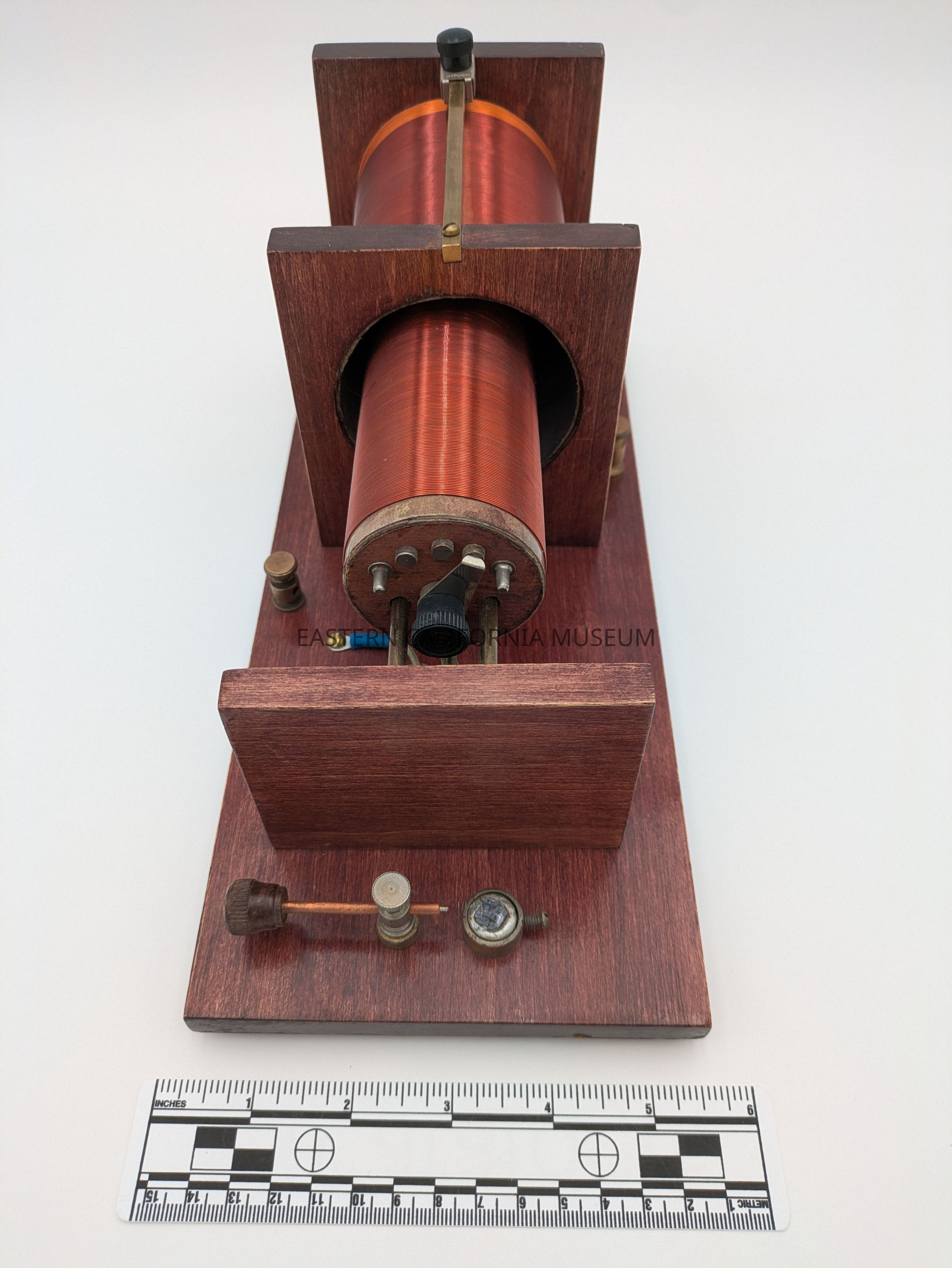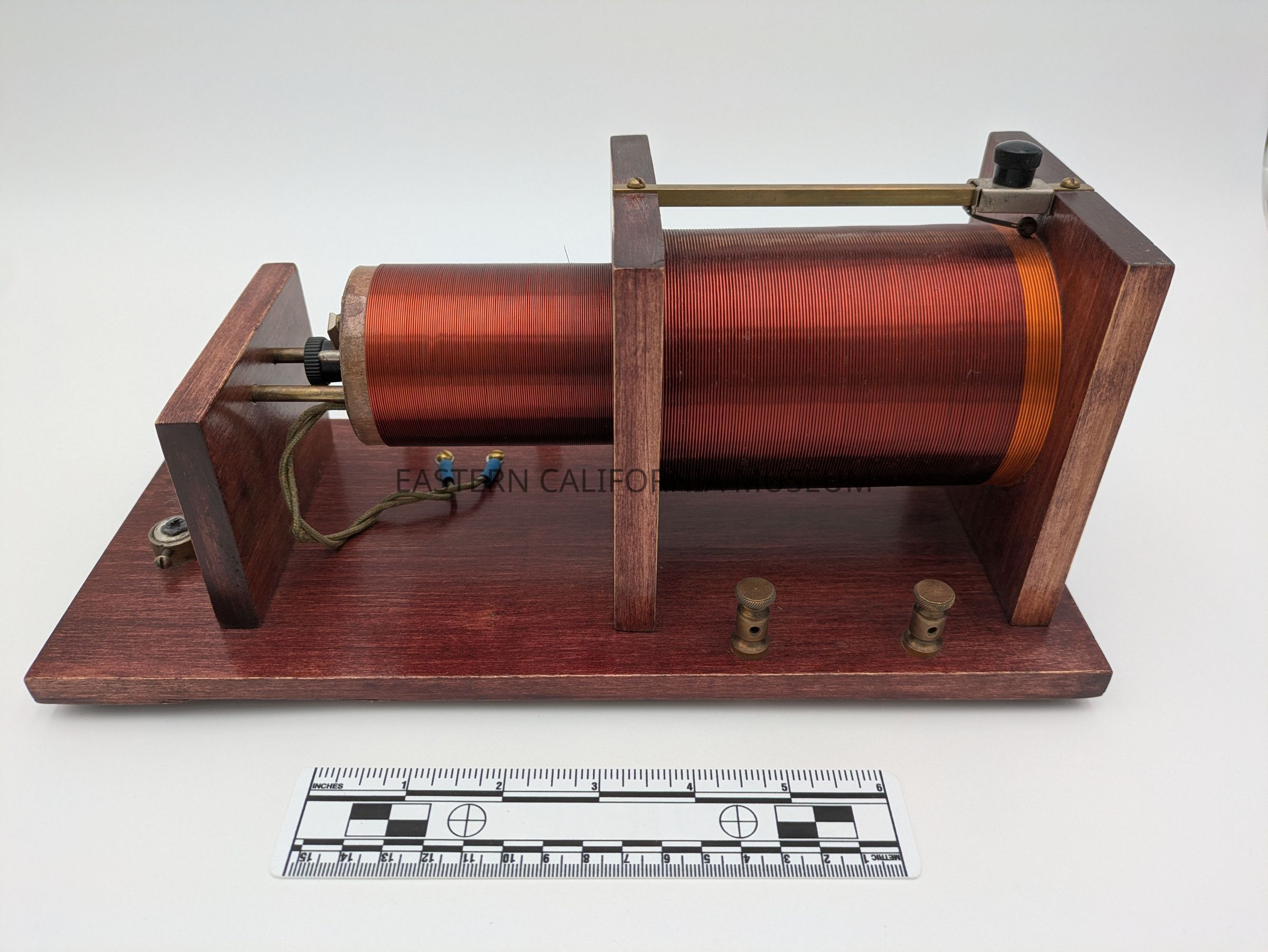 The following information was written by Mr. Sluyter in 1970: Radio signals, or "wireless" as it was known in those days, were first received on a crystal set receiver, because of the galena crystal and "cats whisker" detector. This device is also known as a "loose coupler" because of the inner coil which slid inside the large outer coil of wire. Station selection or "tuning" was accomplished by means of the sliding contact on the large coil. Needless to say the received signal was very weak and head phones were required. Built by Leonard Sluyter of Independence in about 1921. Donated by him to the Museum.Collection
