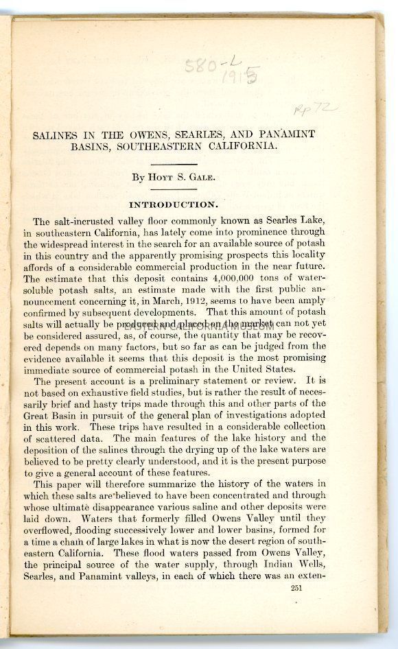 Salines in the Owens, Searles and Panamint Basins, Southeastern CaliforniaEntry/Object ID