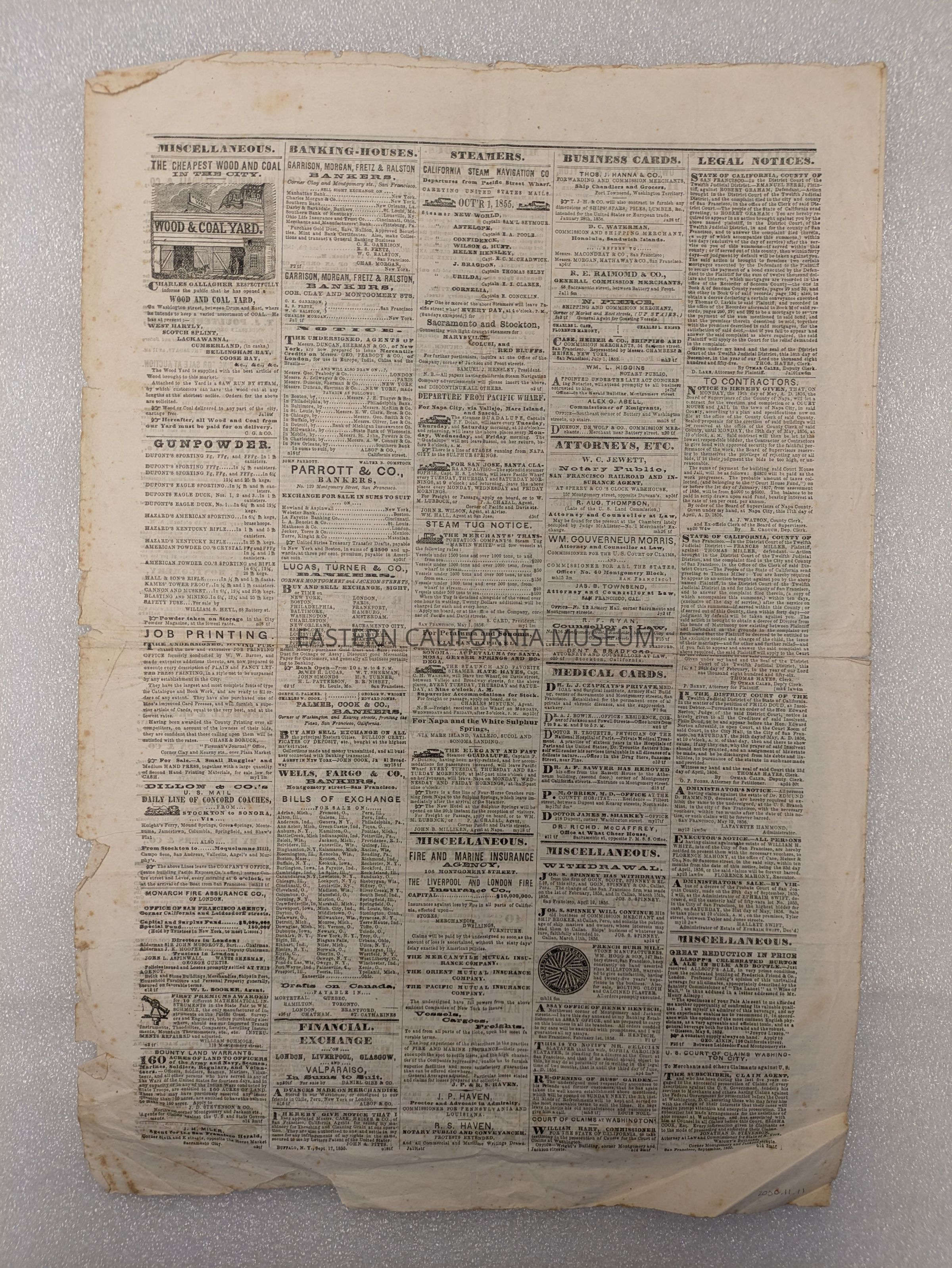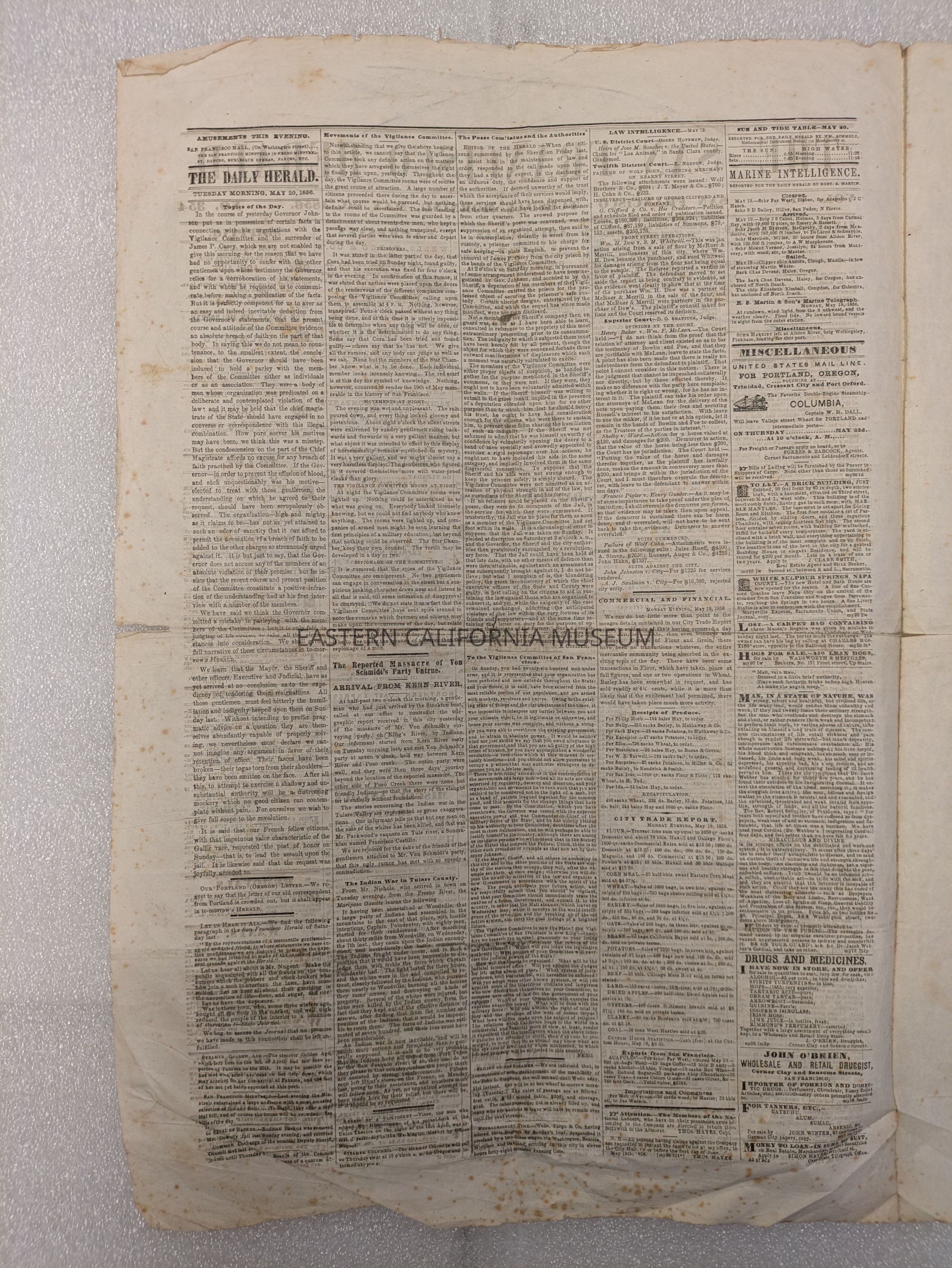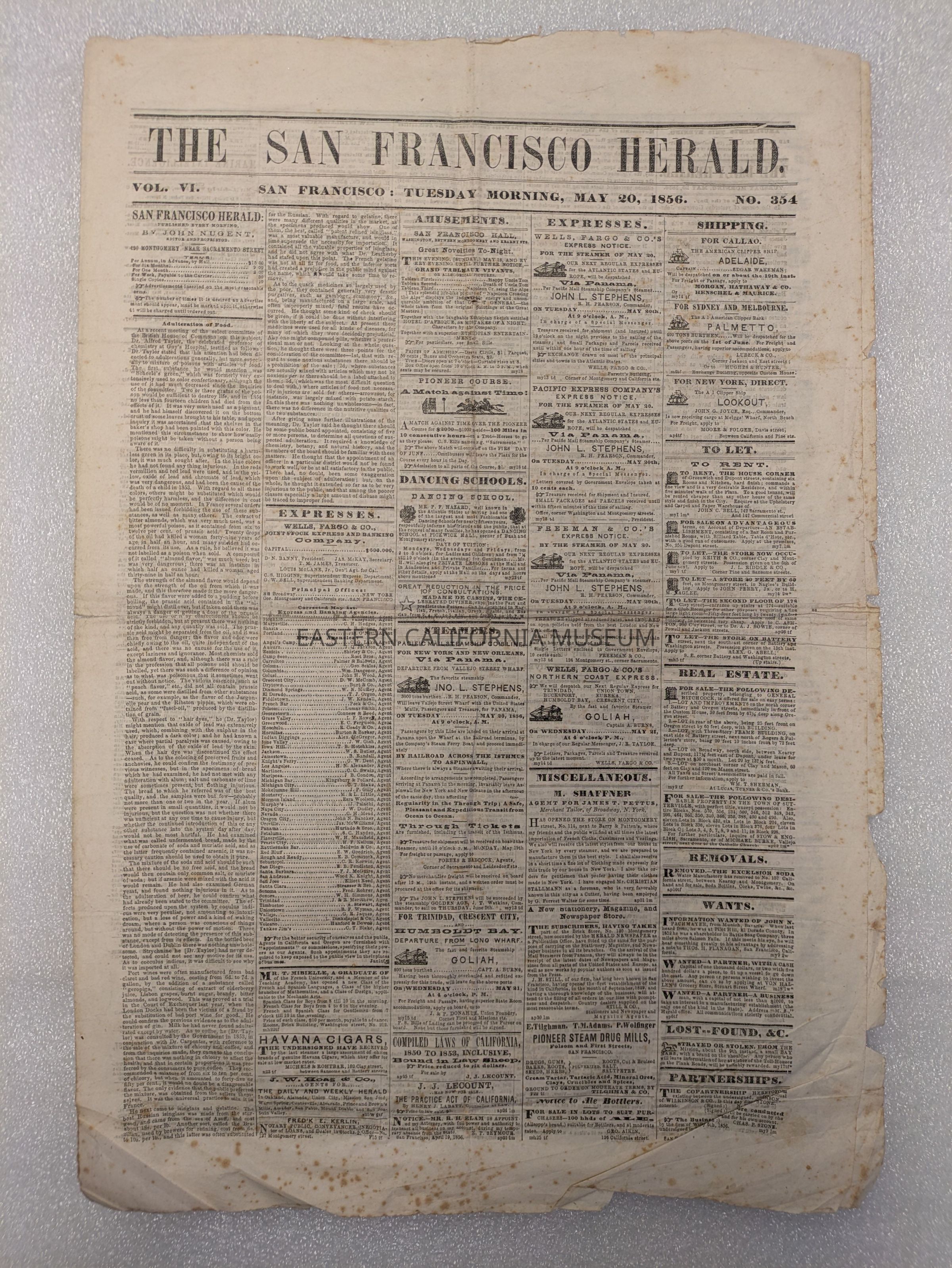 Newspaper: San Francisco Herald, Vol. VI, No. 354, May 20, 1856.Collection