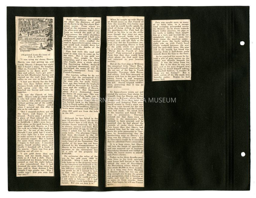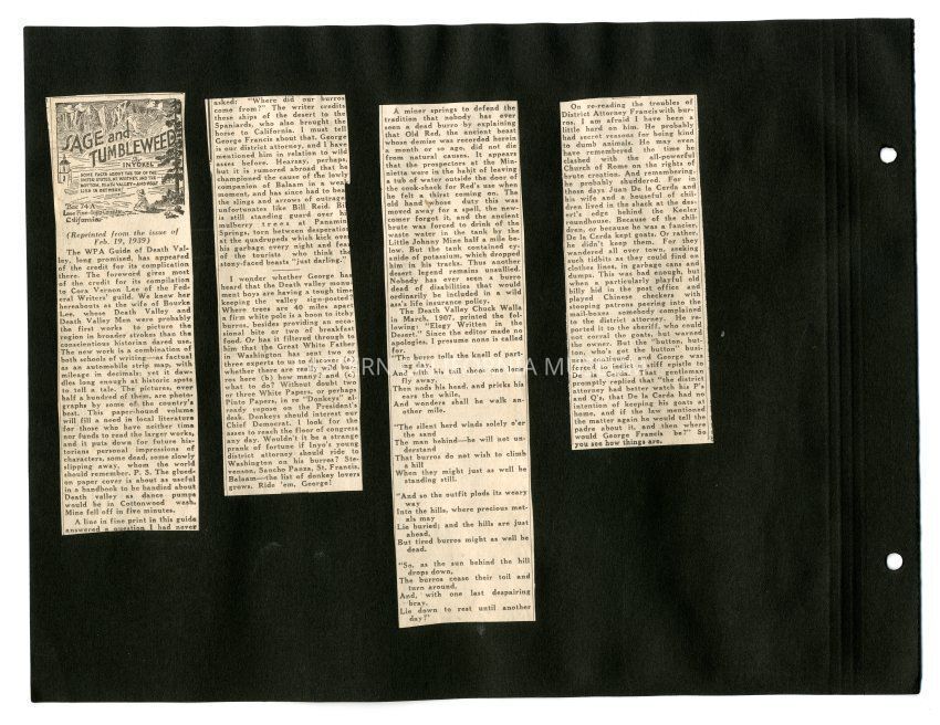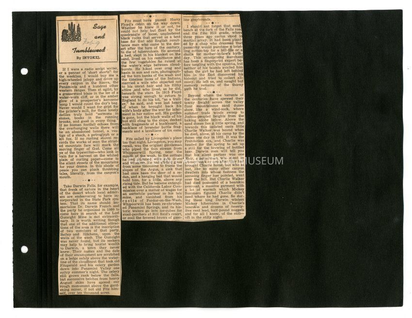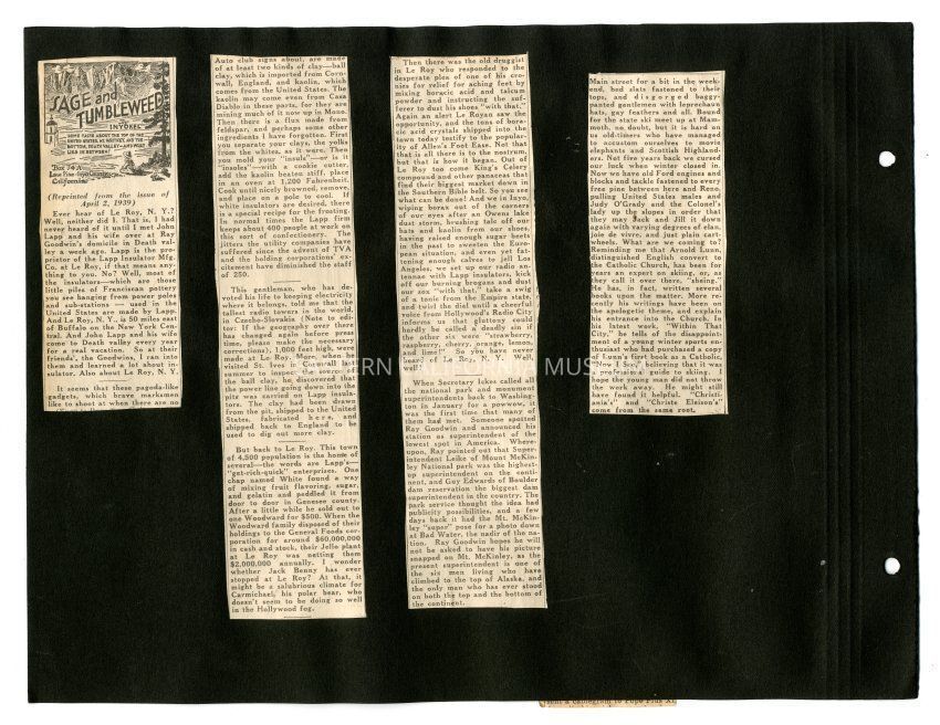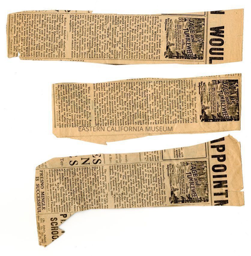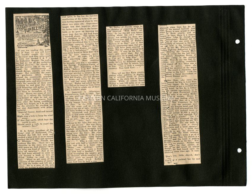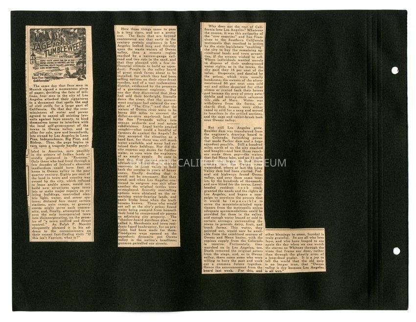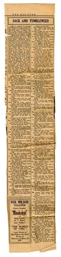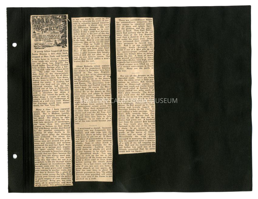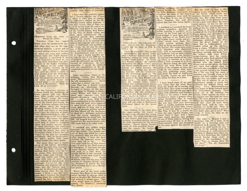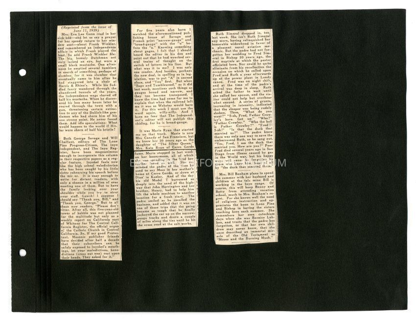 Scrapbook of newspaper clippings, primarly copies of "Sage and Tumbleweed," a column written by Father John J. Crowley, and also articles about his death. There are a few loose clipped columns in an envelope tucked inside the scrapbook.Collection