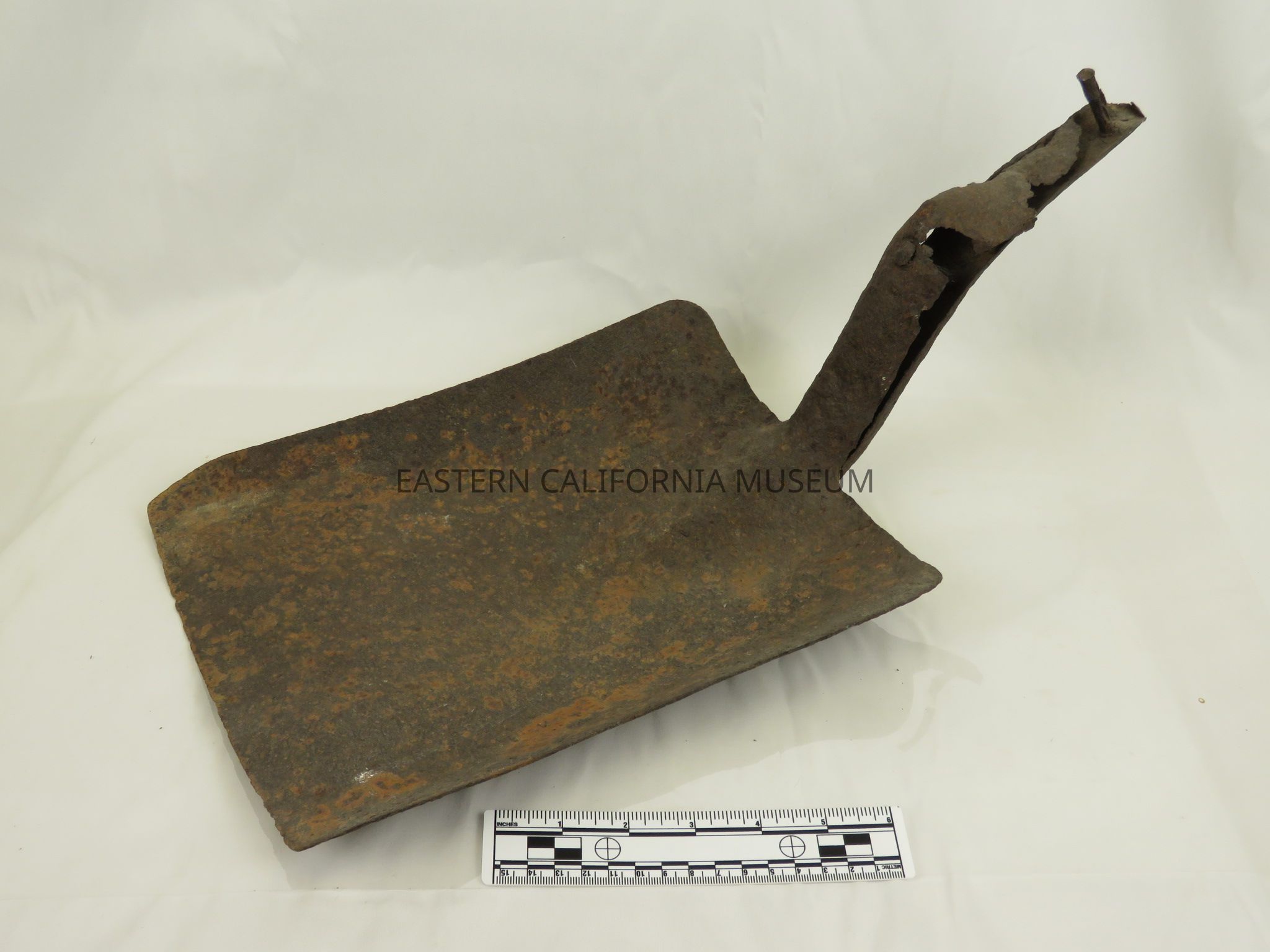 Badly rusted shovel head. It may have been found at Manzanar.