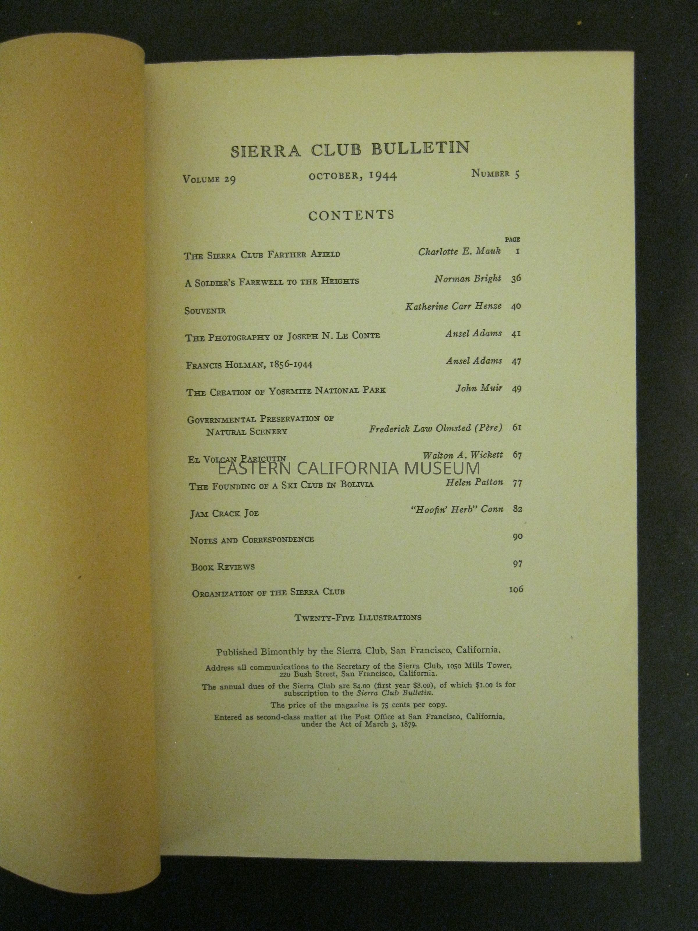 Sierra Club Bulletin, Vol. 29, No. 5, October 1944Entry/Object ID