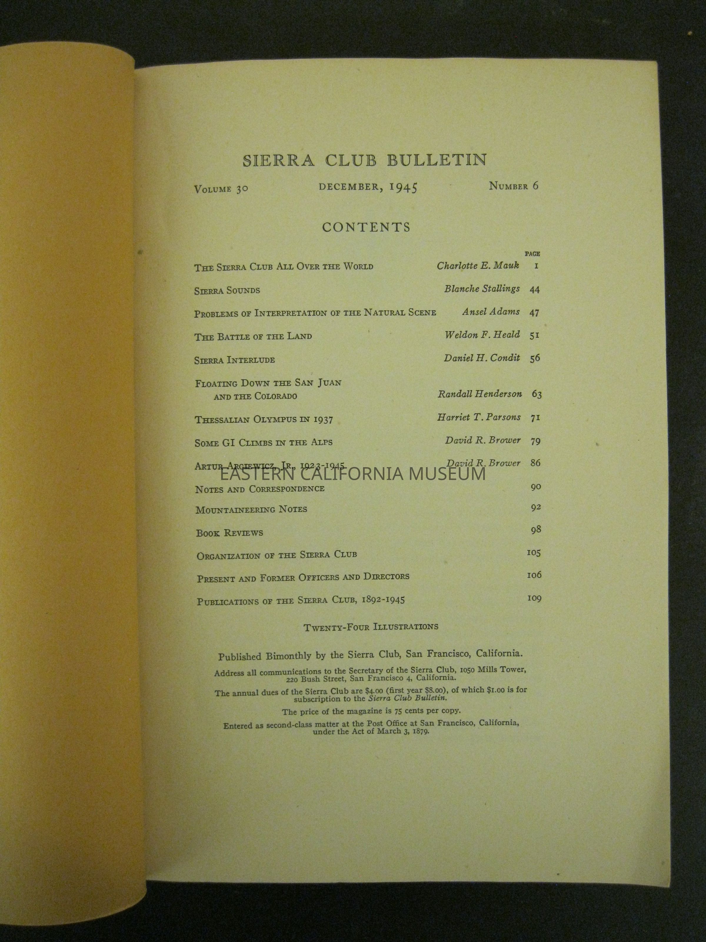 Sierra Club Bulletin, Vol. 30, No. 6, December 1945Entry/Object ID