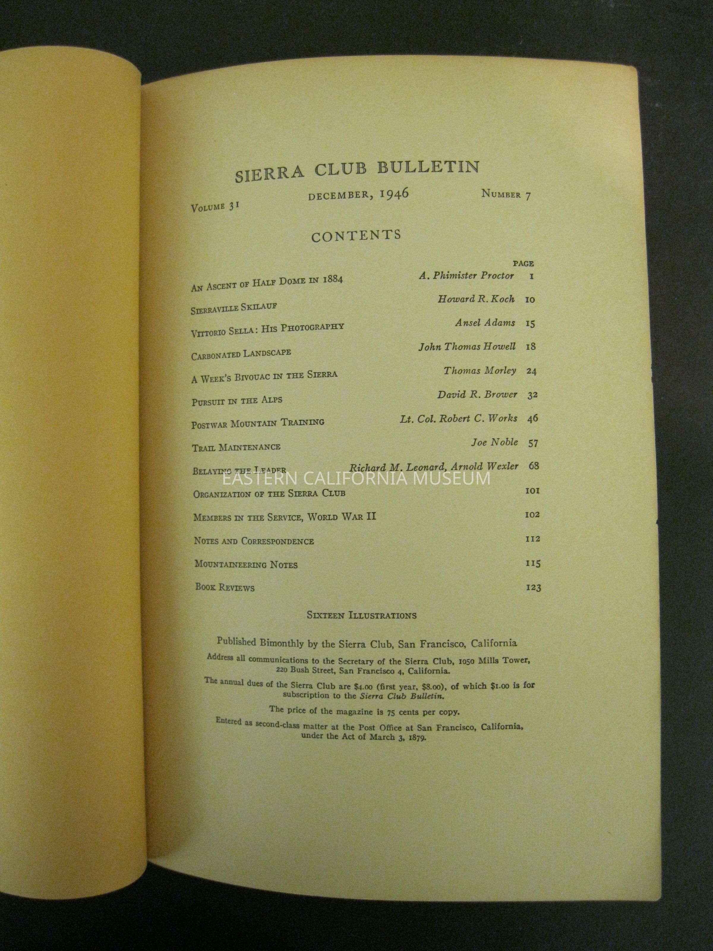Sierra Club Bulletin, Vol. 31, No. 7, December 1946Entry/Object ID