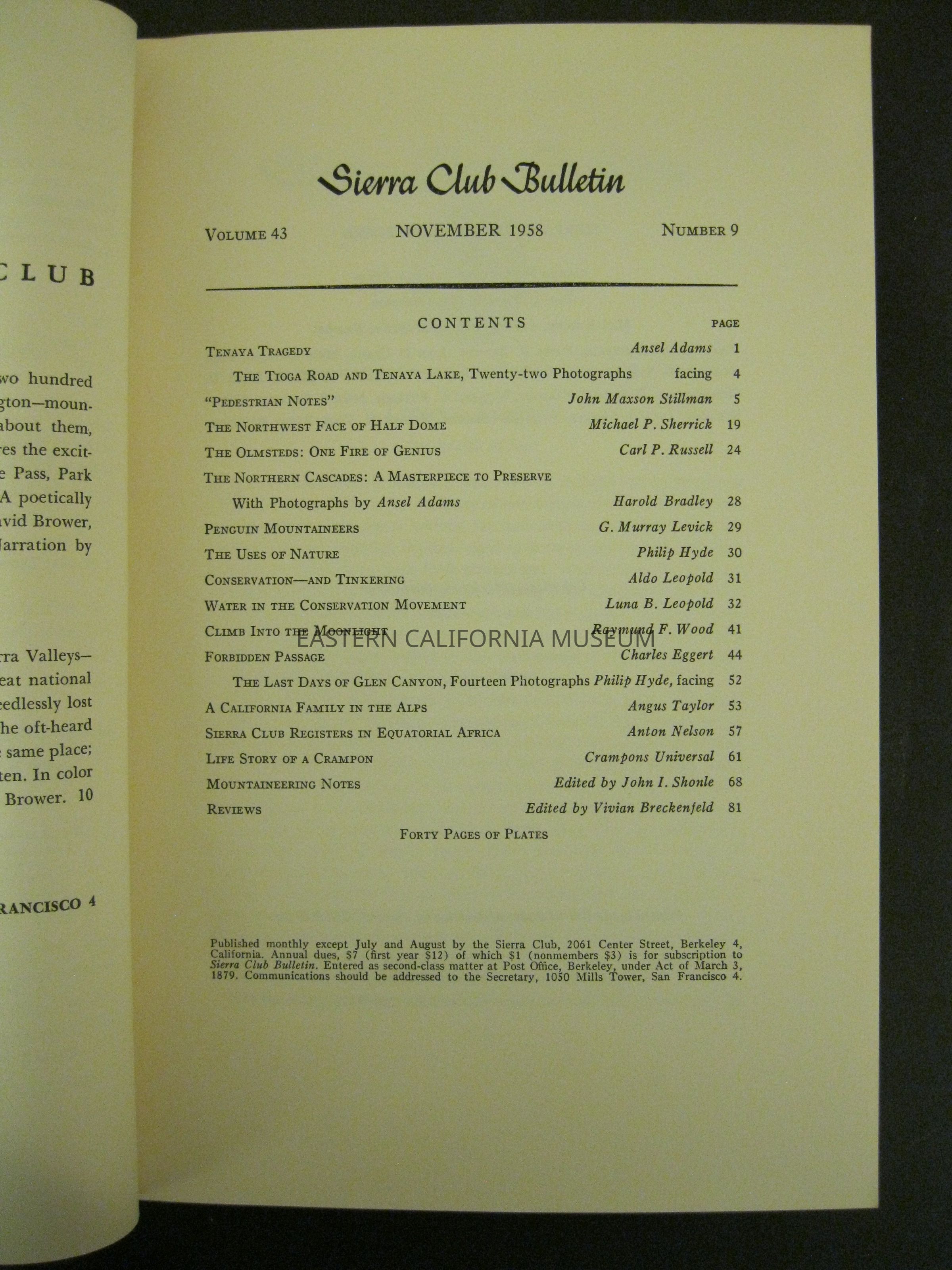 Sierra Club Bulletin, Vol. 43, No. 9, November 1958Entry/Object ID
