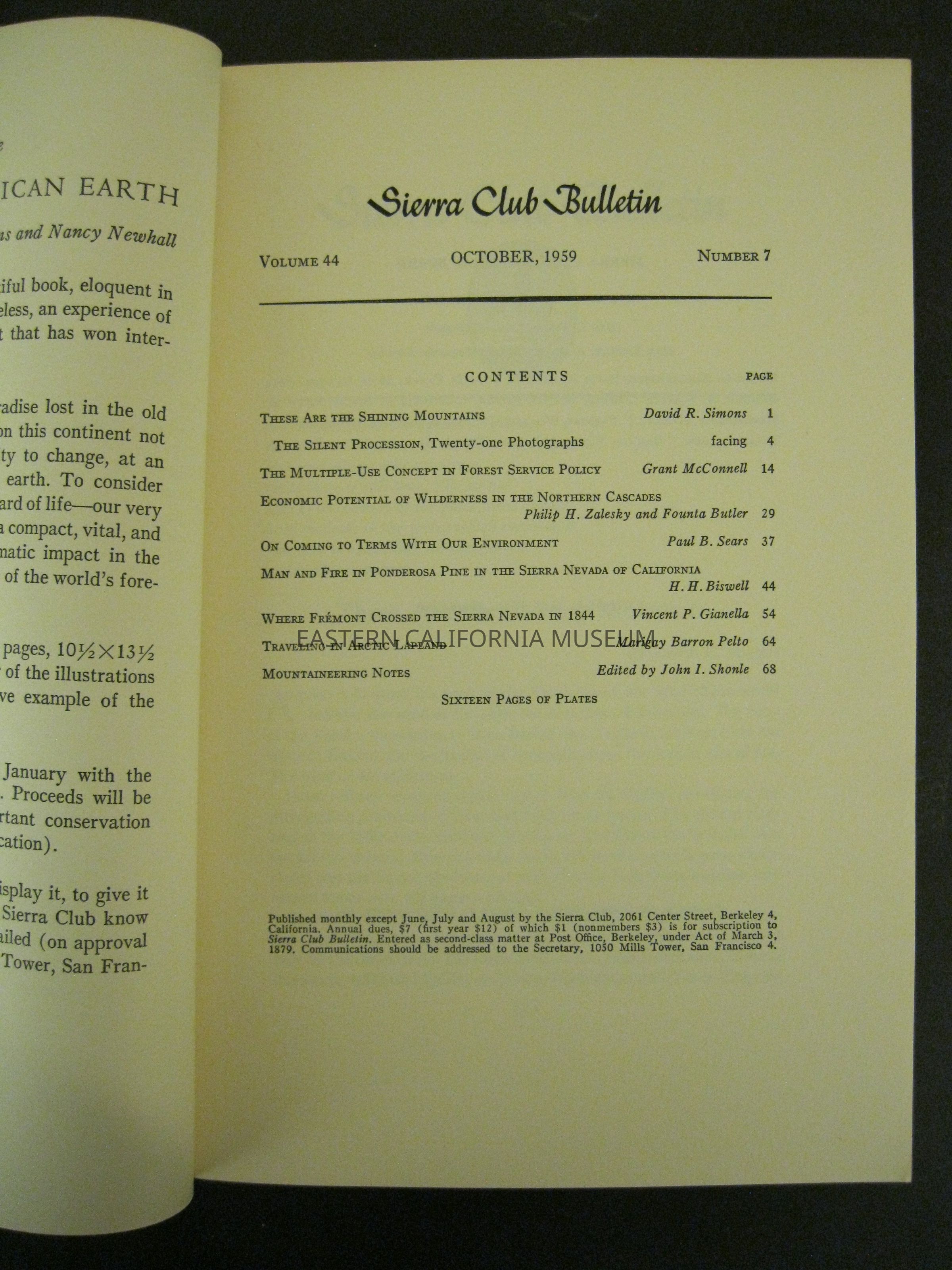 Sierra Club Bulletin, Vol. 44, No. 7, October 1959Entry/Object ID