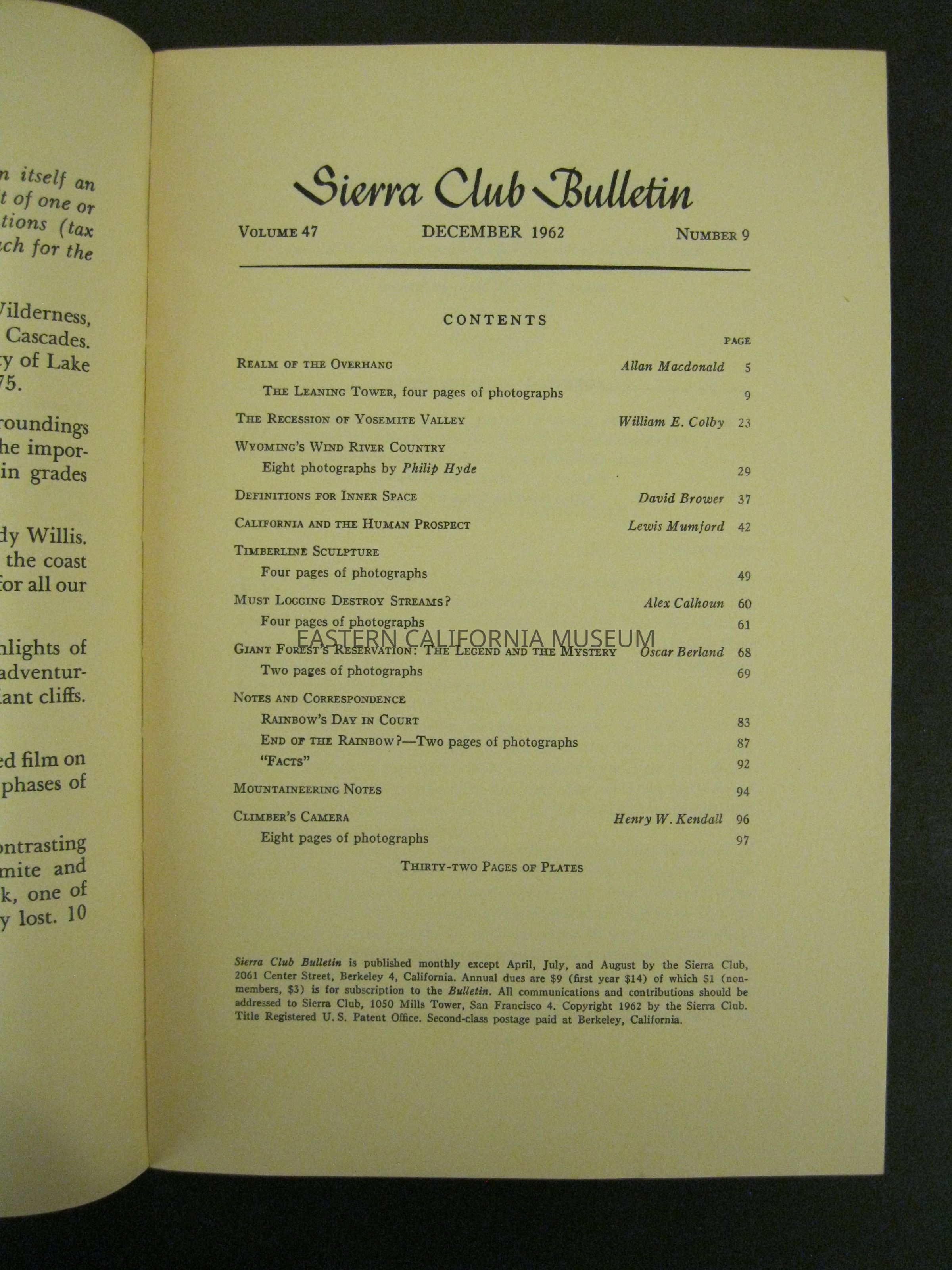 Sierra Club Bulletin, Vol. 47, No. 9, December 1962Entry/Object ID