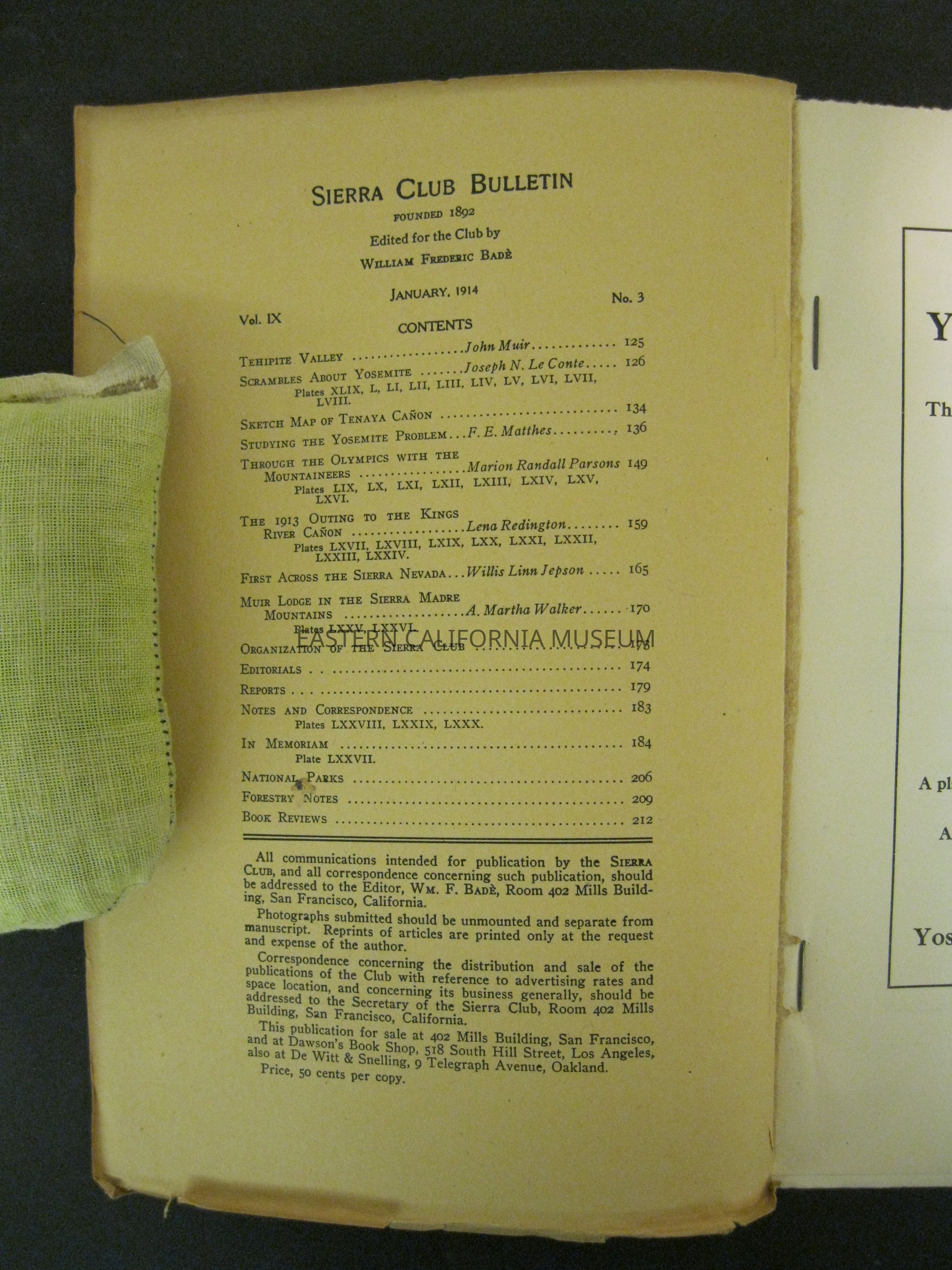 "Sierra Club Bulletin, Vol. IX, No. 3, January 1914"Publication Details