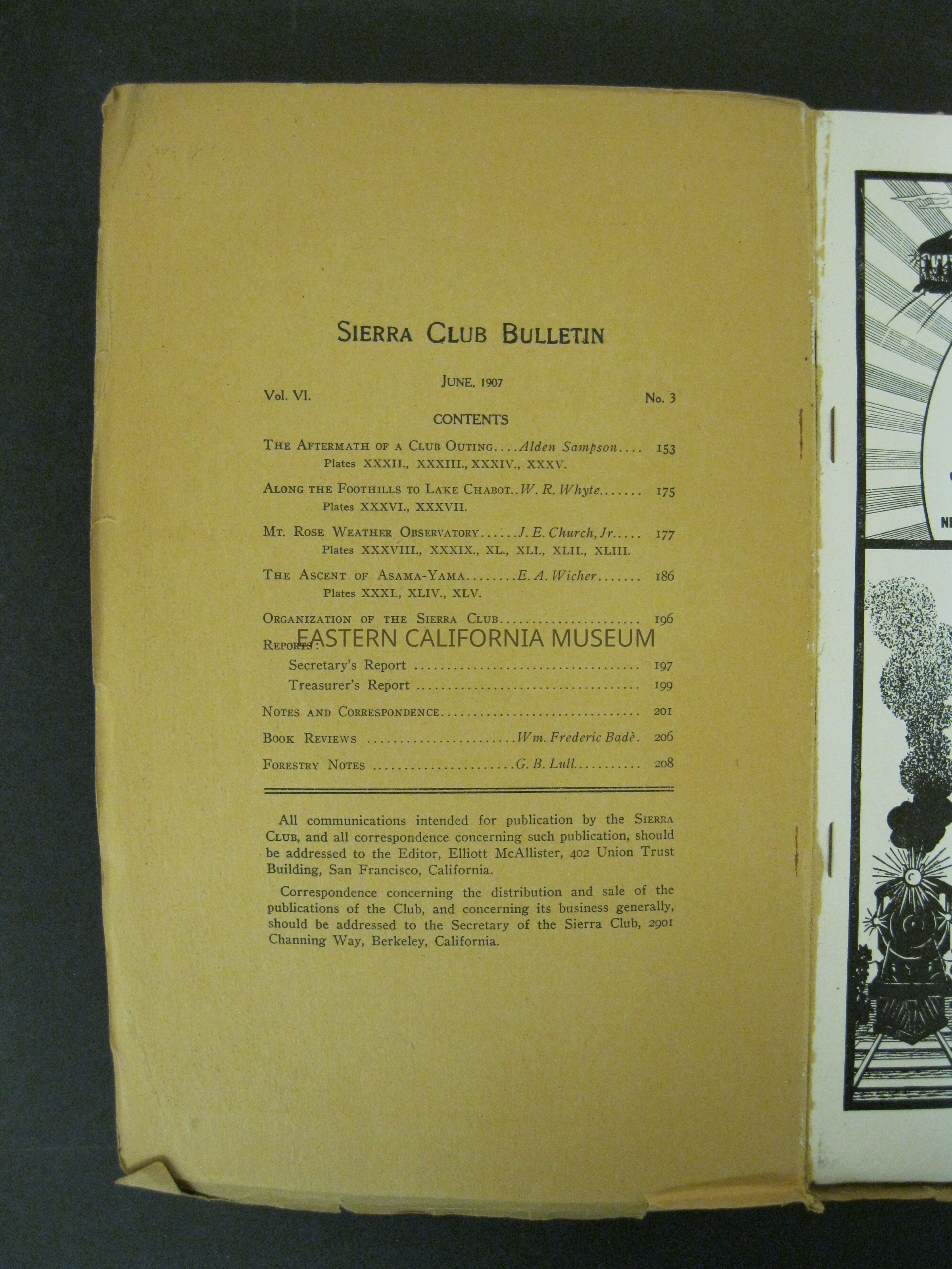 "Sierra Club Bulletin, Vol. VI, No. 3, June 1907"Publication Details