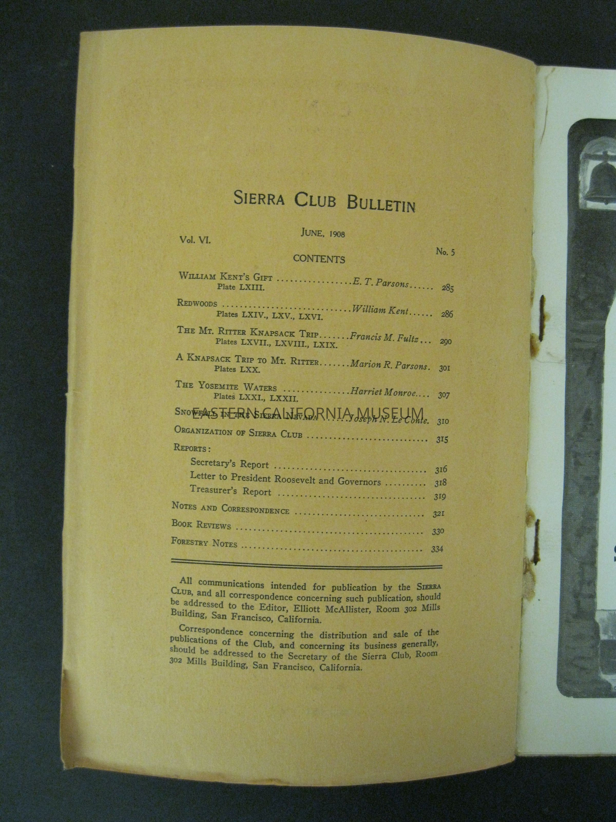 "Sierra Club Bulletin, Vol. VI, No. 5, June 1908"Publication Details